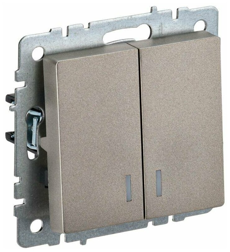 Выключатель встраиваемый IEK Brite 2 клавиши с индикатором цвет шампань BR-V20-1-10-K37 Brite шампань