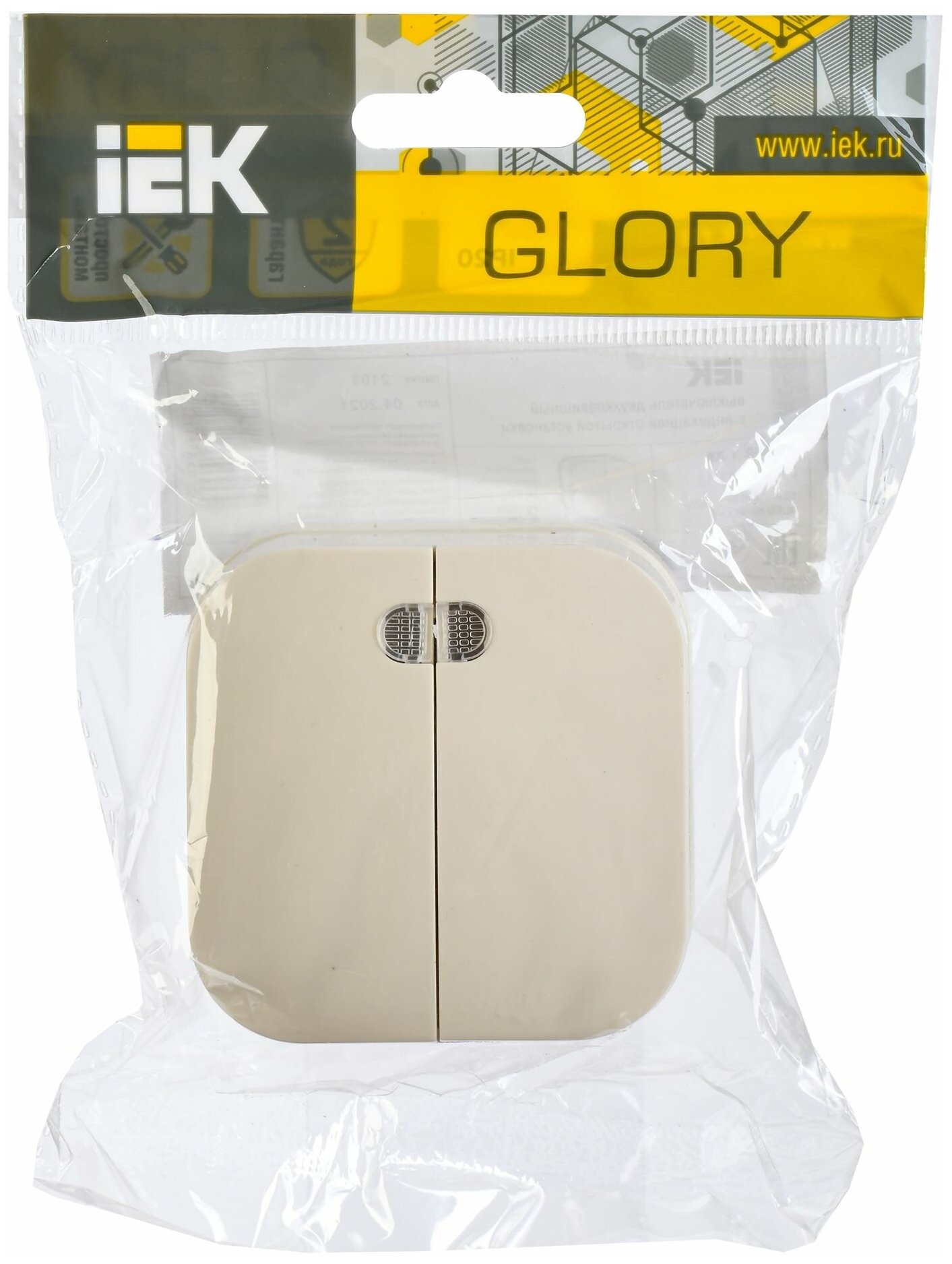 Выключатель IEK GLORY 2кл. индикатор/подсветка открытый монтаж в сборе дуб (EVH21-K24-10) EVH21-K24-10 Glory дуб