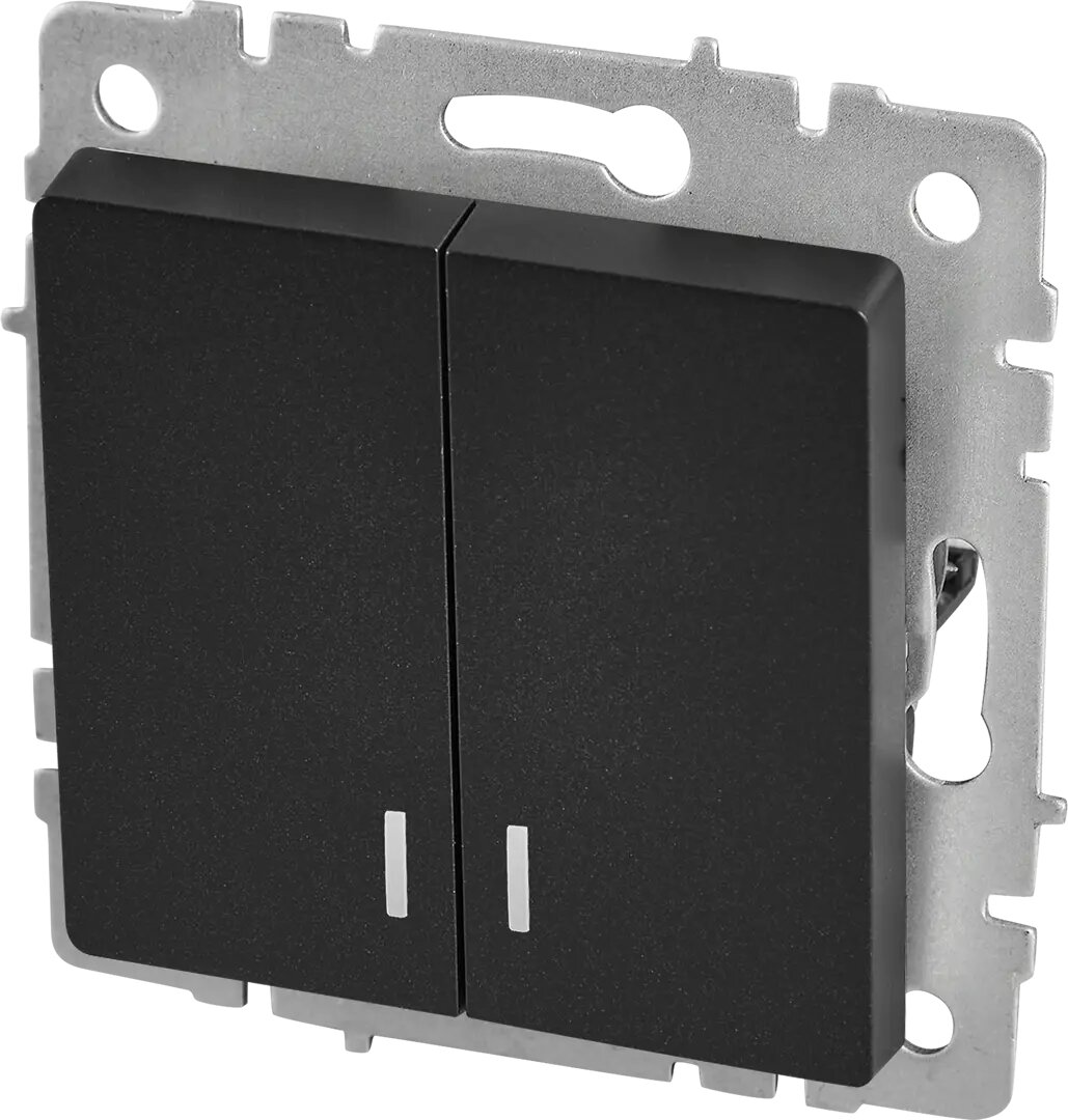 Выключатель встраиваемый IEK Brite 2 клавиши с индикатором цвет черный BR-V20-1-10-K02 Brite черный
