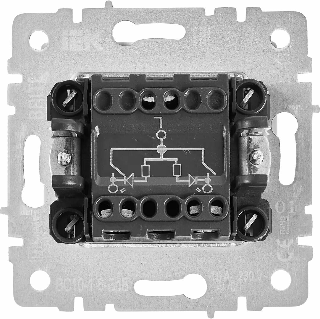 **Выключатель IEK Brite** предназначен для управления одним источником освещения. Встраиваемый тип монтажа позволяет органично вписать выключатель в современный интерьер. Используется в сетях с силой тока 10 А. Изготовлен из высококачественного пластика устойчивого к воздействию влаги и умеренным механическим нагрузкам.