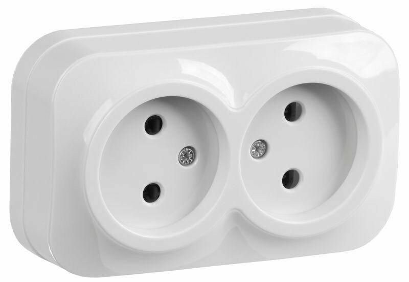 Розетка IEK GLORY открытый монтаж 2-х постовая 10A в сборе IP20 белый (ERH20-K01-10) ERH20-K01-10 Glory белая