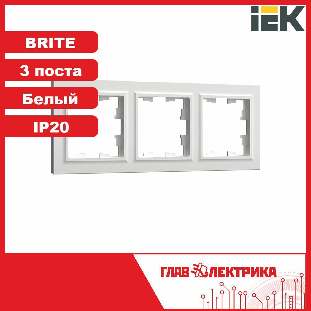 **Рамка Brite-3 ** предназначена для размещения розетки и выключателя. Отличается средним уровнем влагозащиты, соответствующим классу IP44. Это означает, что она защищена от попадания брызг и пыли.