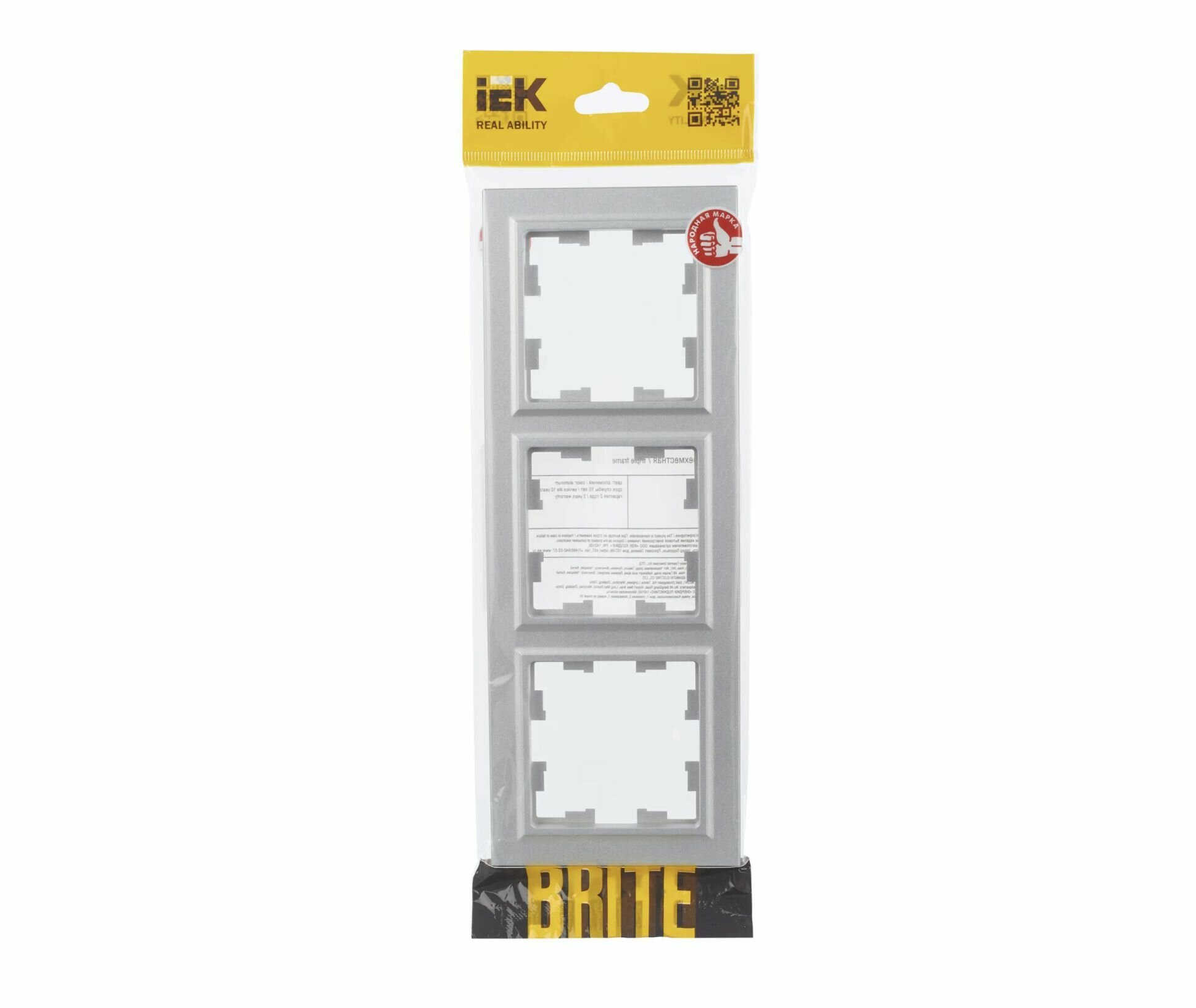 Рамка IEK BRITE горизонтальная и вертикальная 3-поста алюминий (BR-M32-K47) BR-M32-K47 Brite алюминий