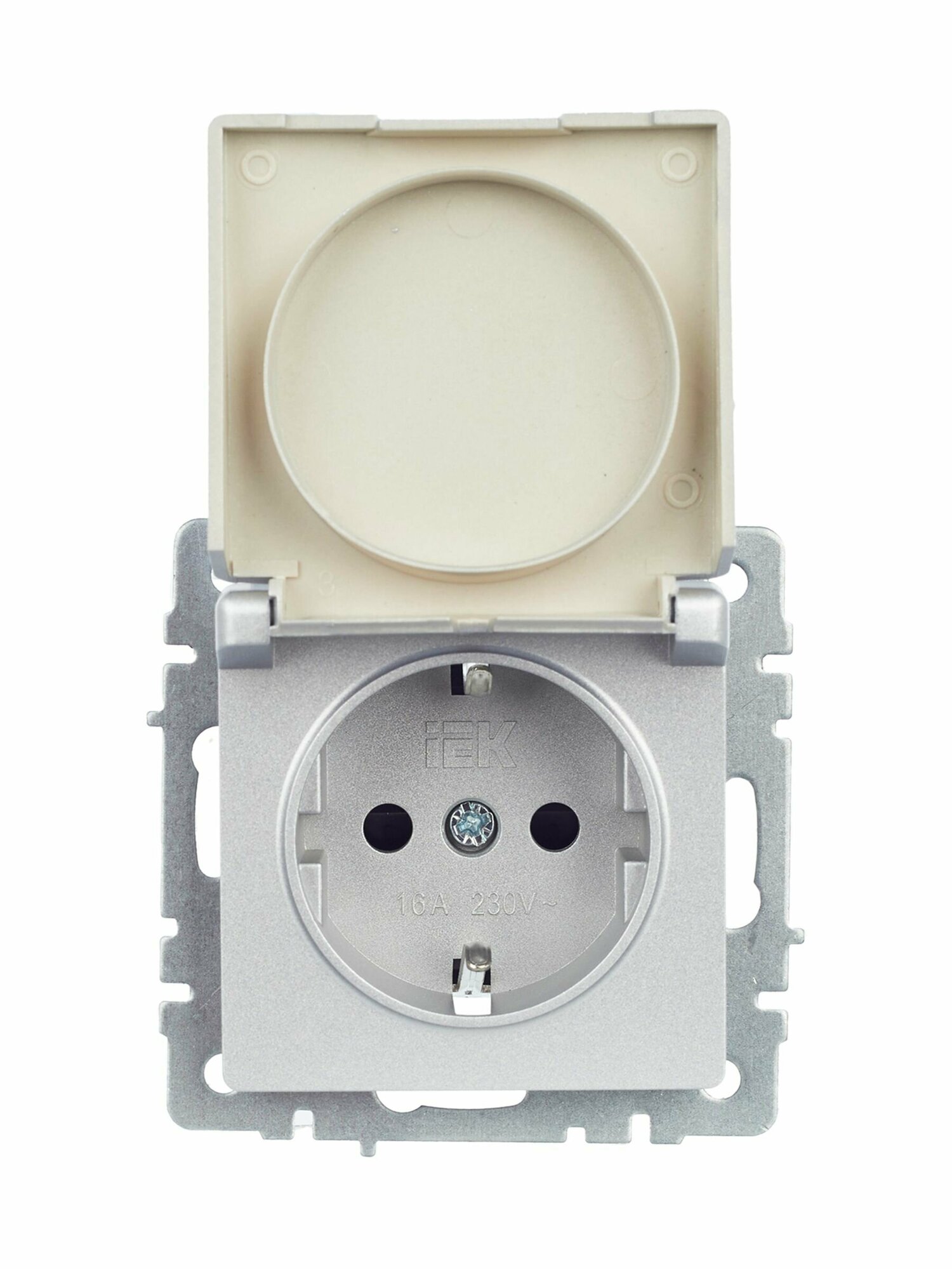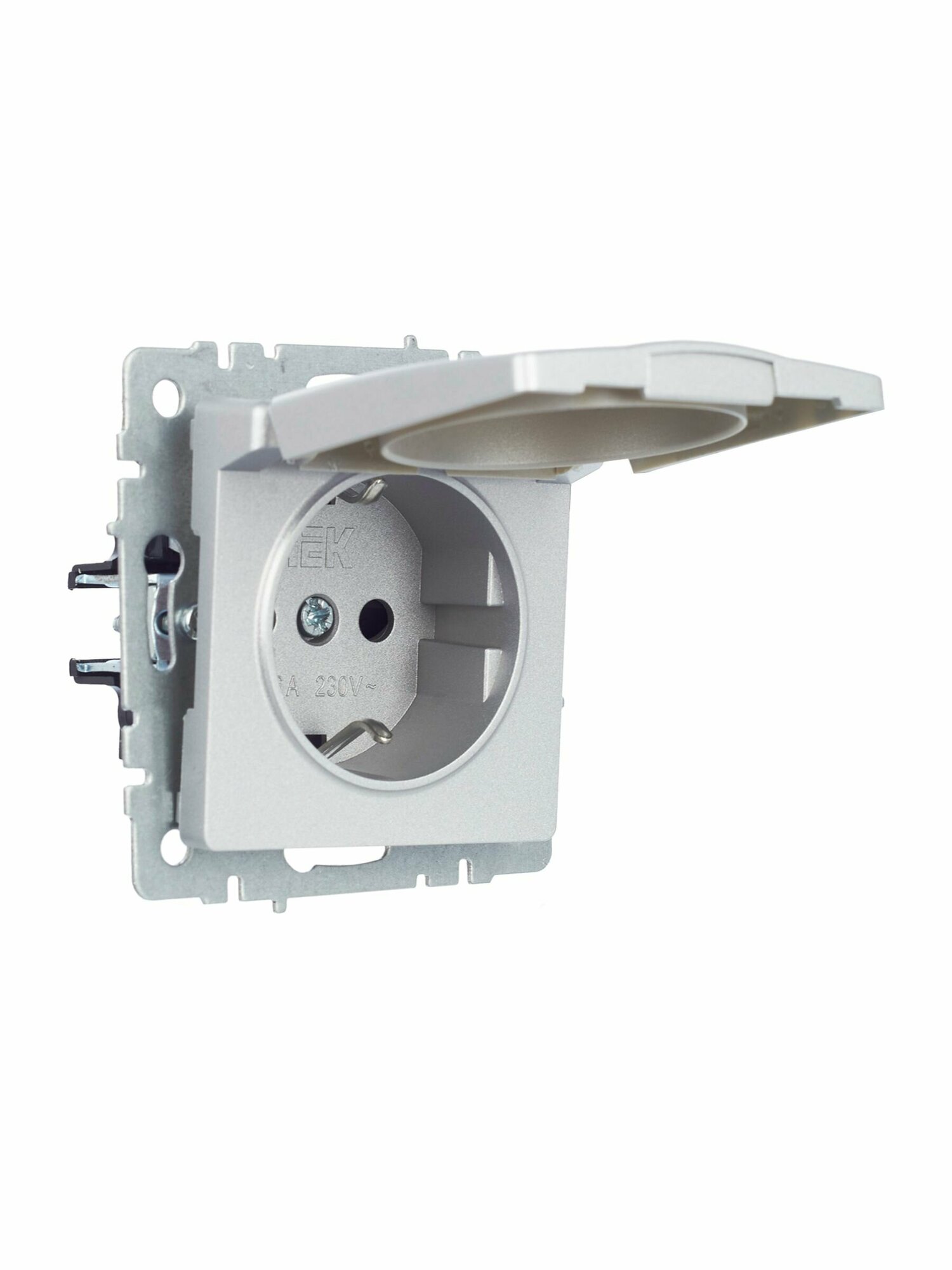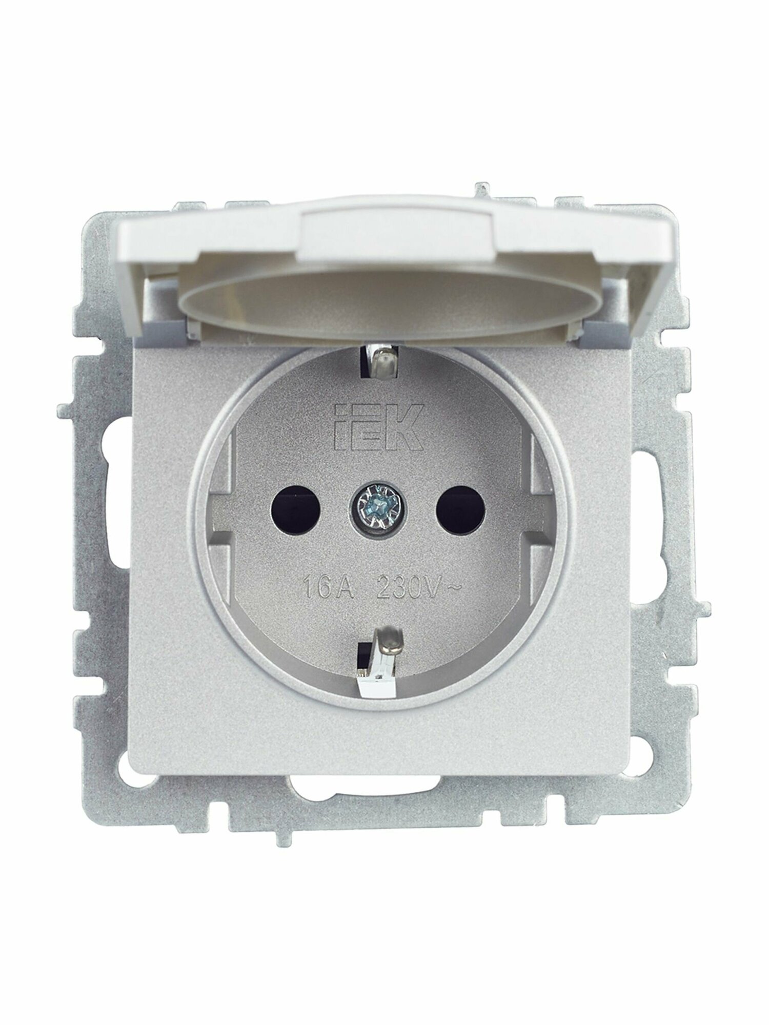 Розетка IEK BRITE скрытый монтаж однопостовая с з/к со шторками с крышкой 16A механизм с накладкой и суппортом IP20 алюминий (BR-R16-16-K47) BR-R16-16-K47 Brite алюминий