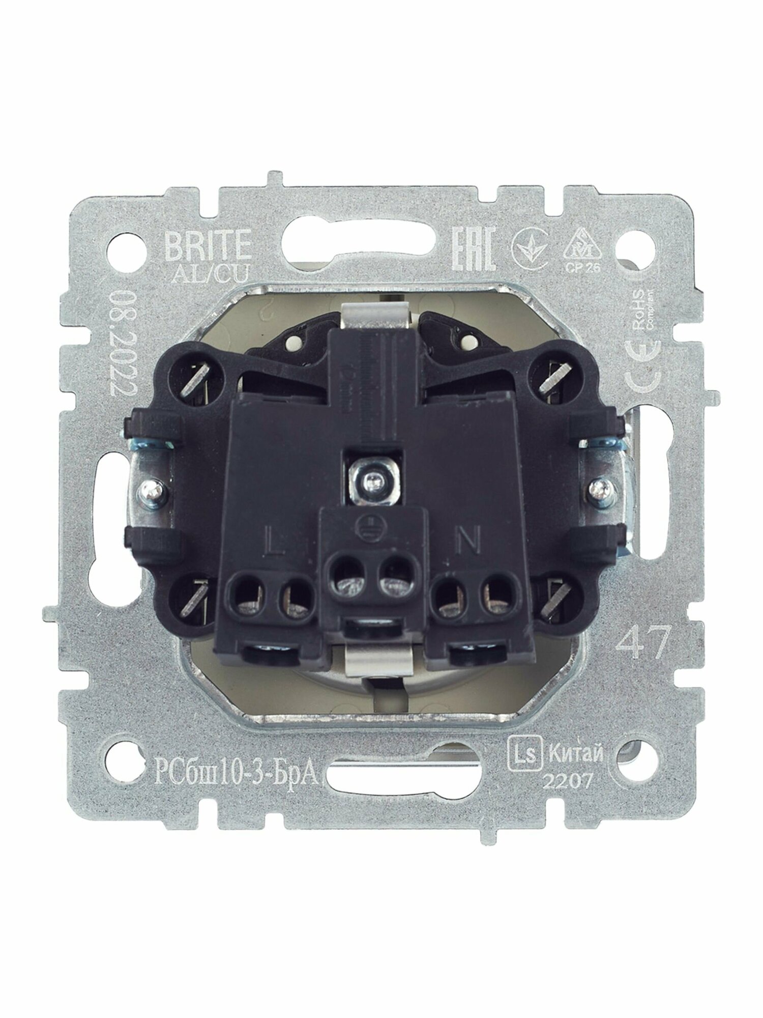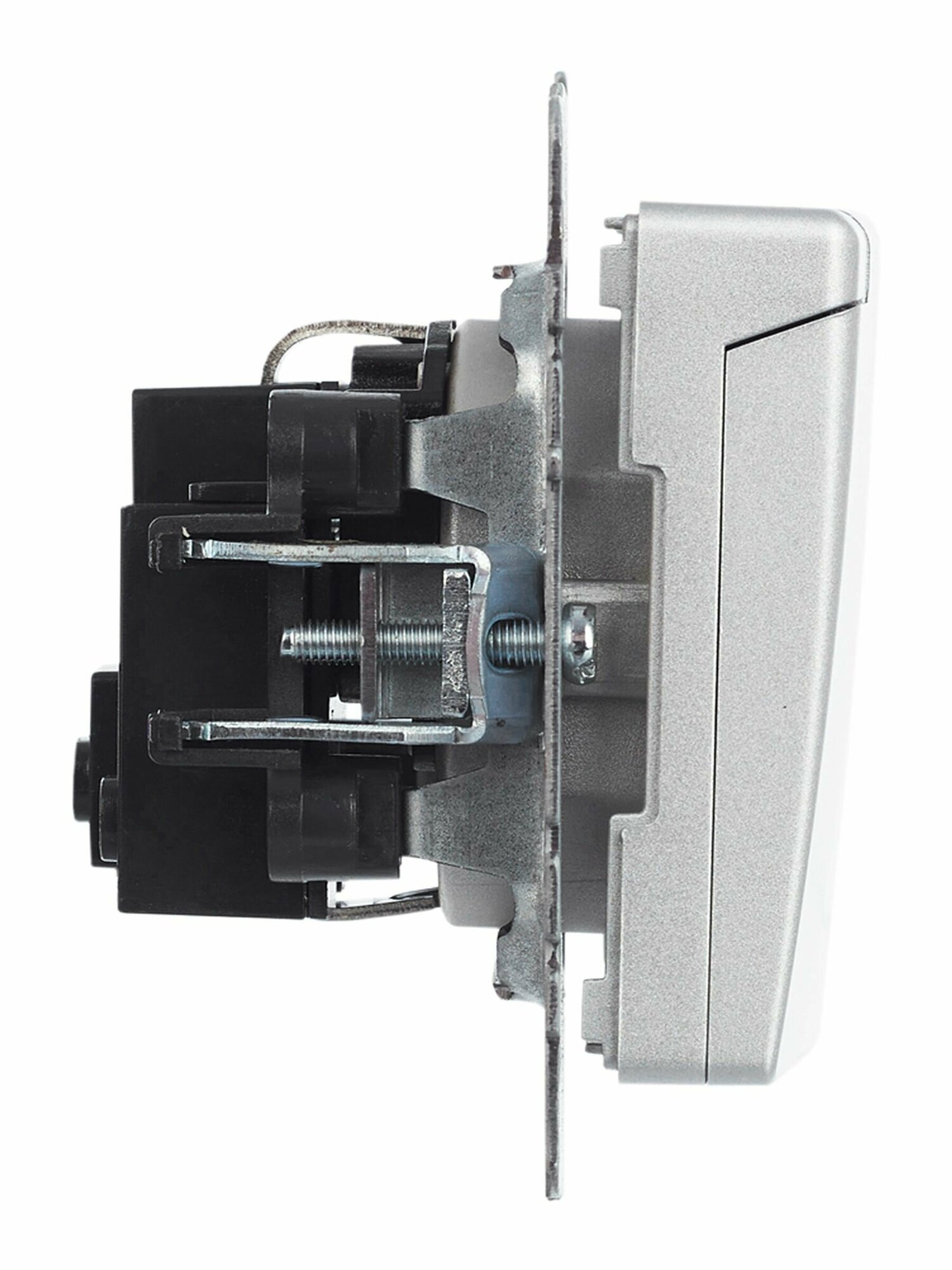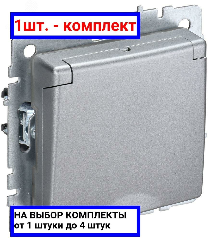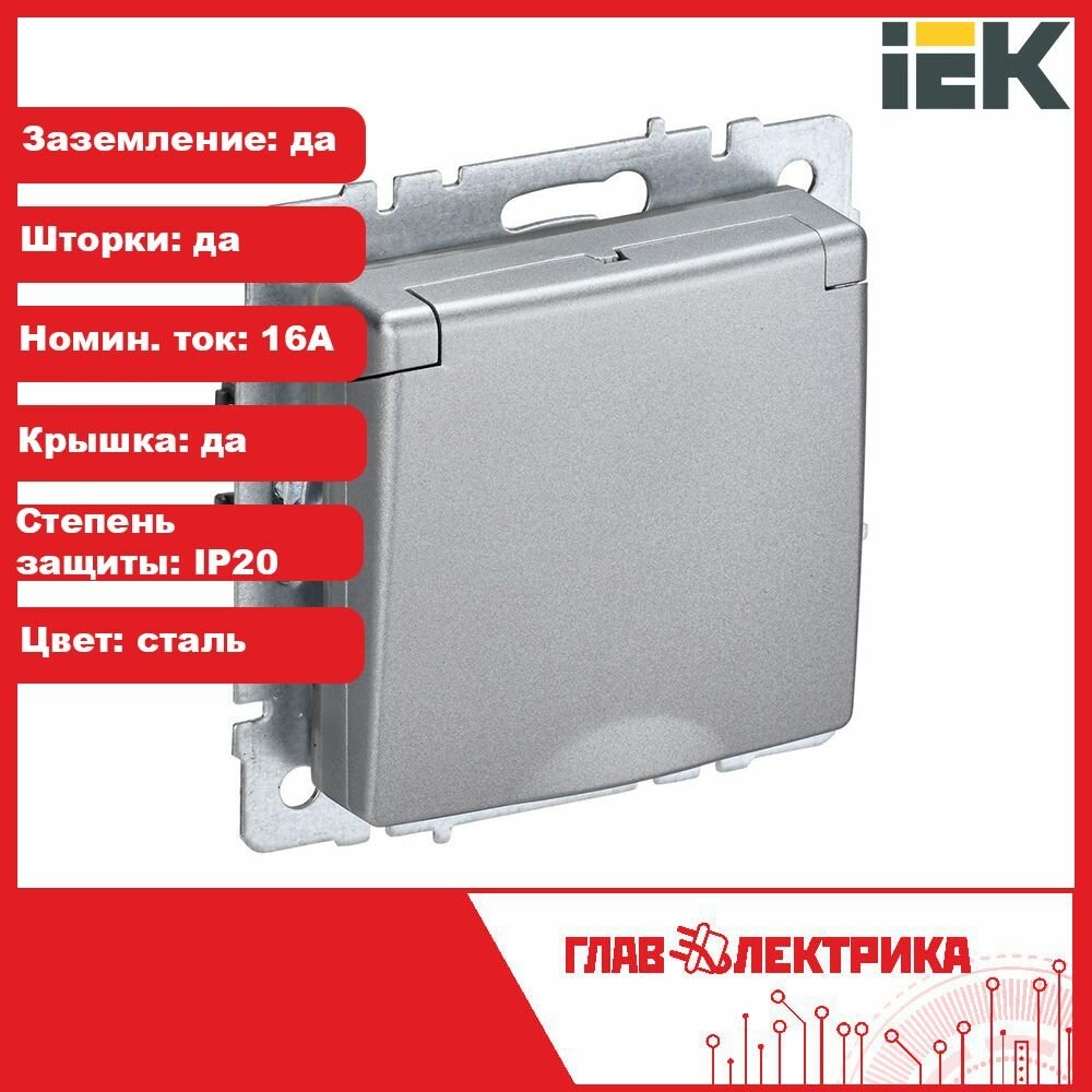 Розетка IEK BRITE скрытый монтаж однопостовая с з/к со шторками с крышкой 16A механизм с накладкой и суппортом IP20 алюминий (BR-R16-16-K47) BR-R16-16-K47 Brite алюминий