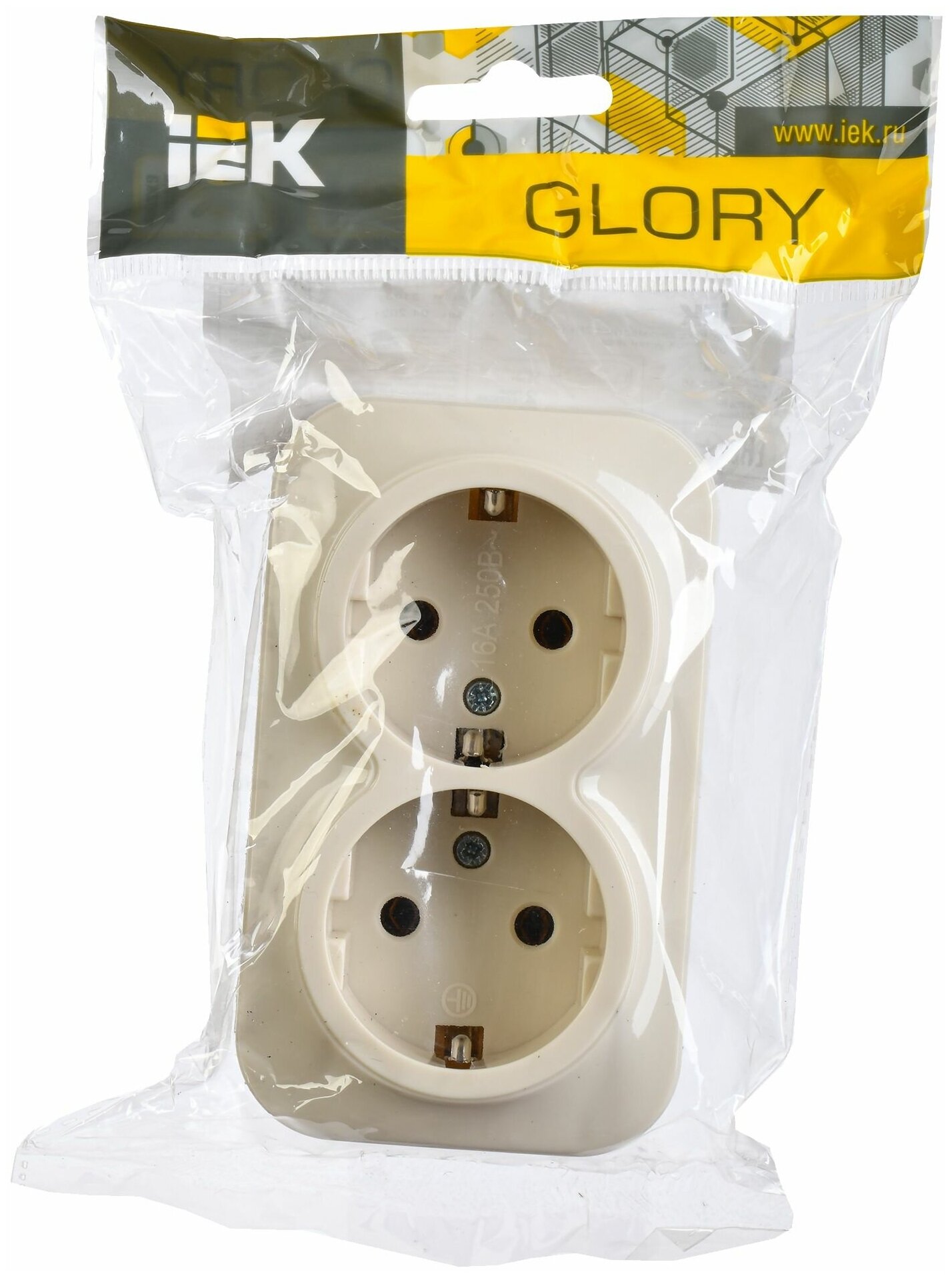 Розетка IEK GLORY открытый монтаж 2-х постовая с з/к 16A в сборе IP20 сосна (ERH21-K34-16) ERH21-K34-16 Glory сосна