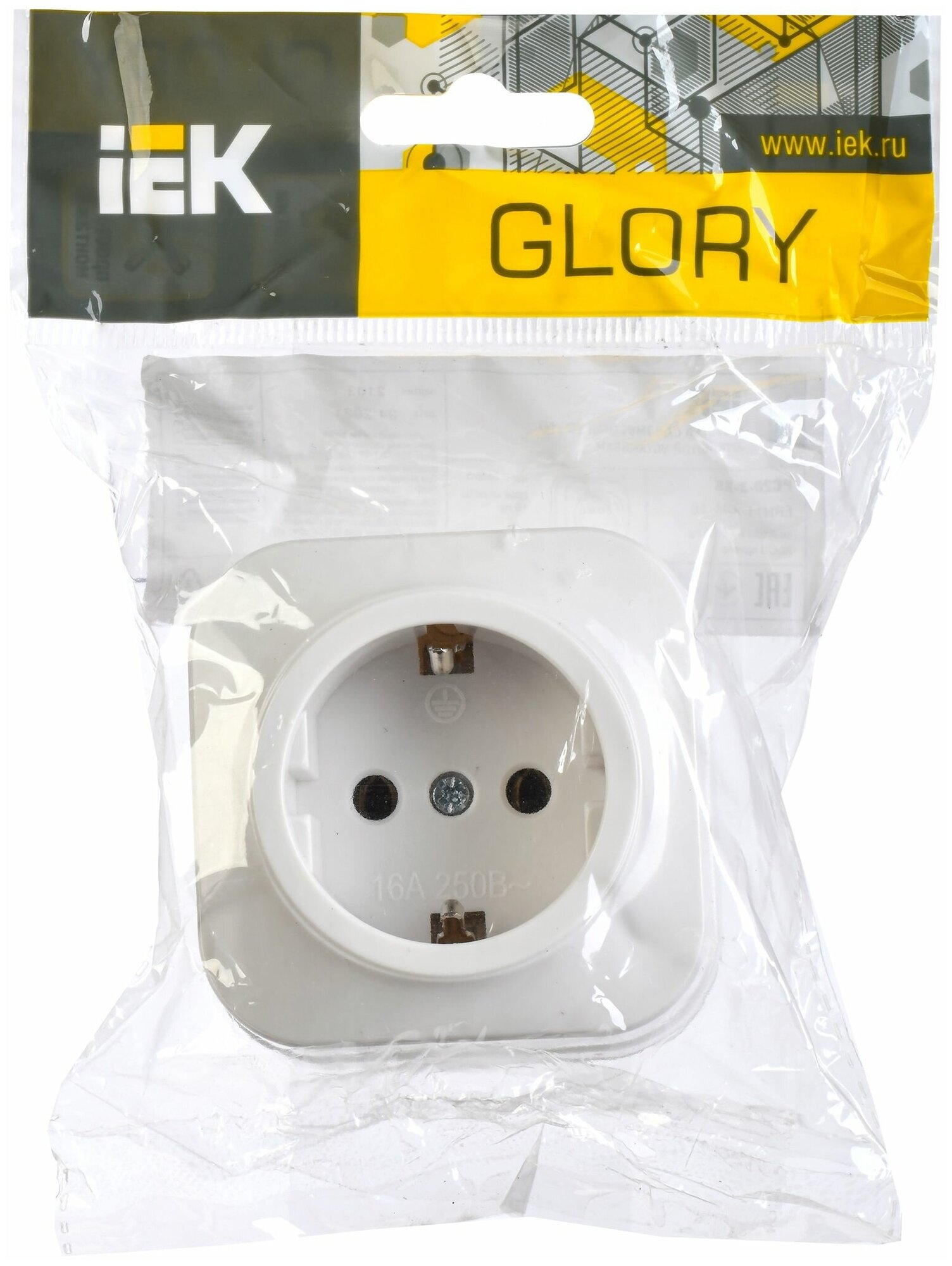 Розетка IEK GLORY открытый монтаж однопостовая/модулей: 1 с з/к 16A в сборе IP20 белый (ERH11-K01-16) ERH11-K01-16 Glory белая