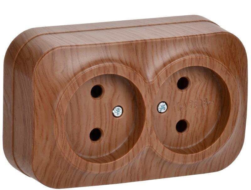 Розетка IEK GLORY открытый монтаж 2-х постовая 10A в сборе IP20 дуб (ERH20-K24-10) ERH20-K24-10 Glory дуб