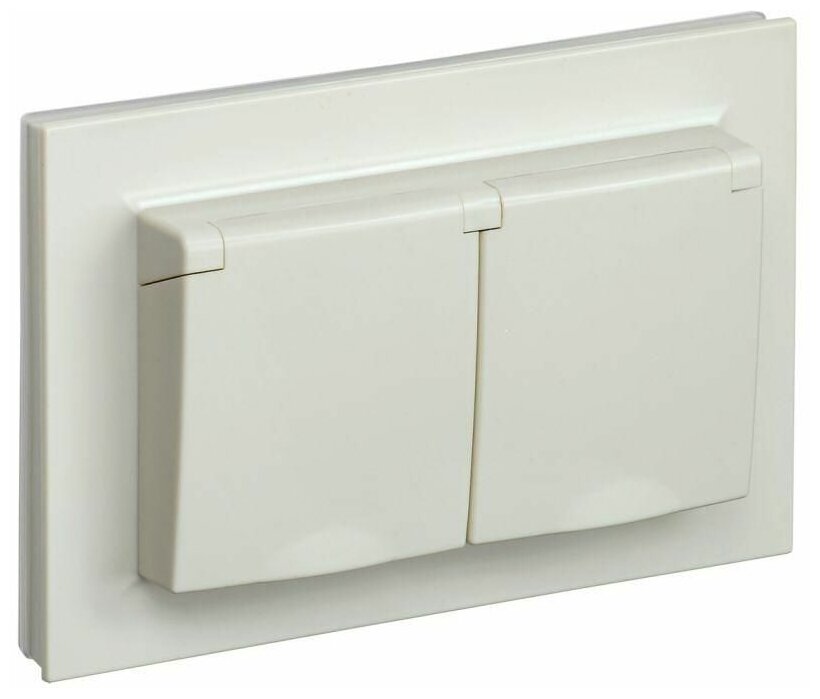 Розетка двойная встраиваемая влагозащищенная IEK Brite РСбш12-3-44-БрКр без заземления с крышкой и шторками IP44 цвет бежевый BR-R26-16-44-K10-F Brite бежевая
