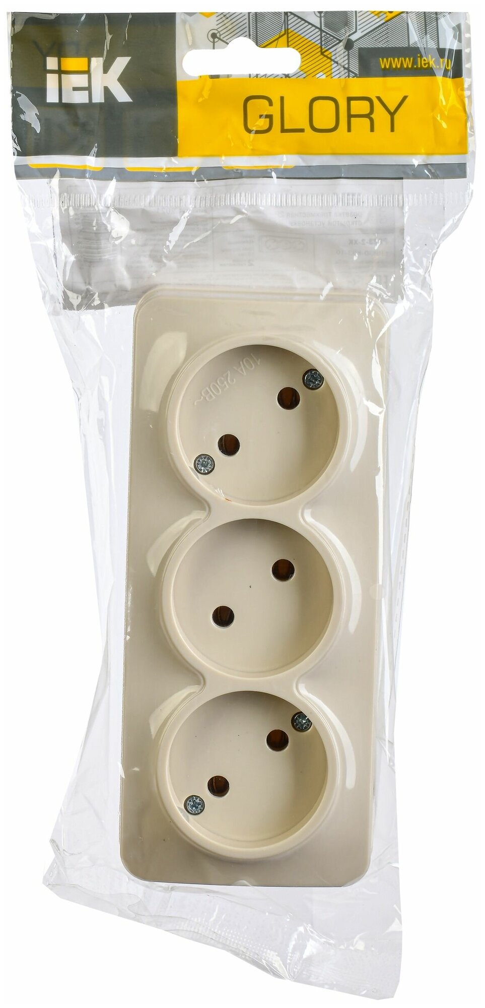 Розетка IEK GLORY открытый монтаж 3-х постовая 10A в сборе IP20 кремовый (ERH30-K33-10) ERH30-K33-10 Glory кремовая