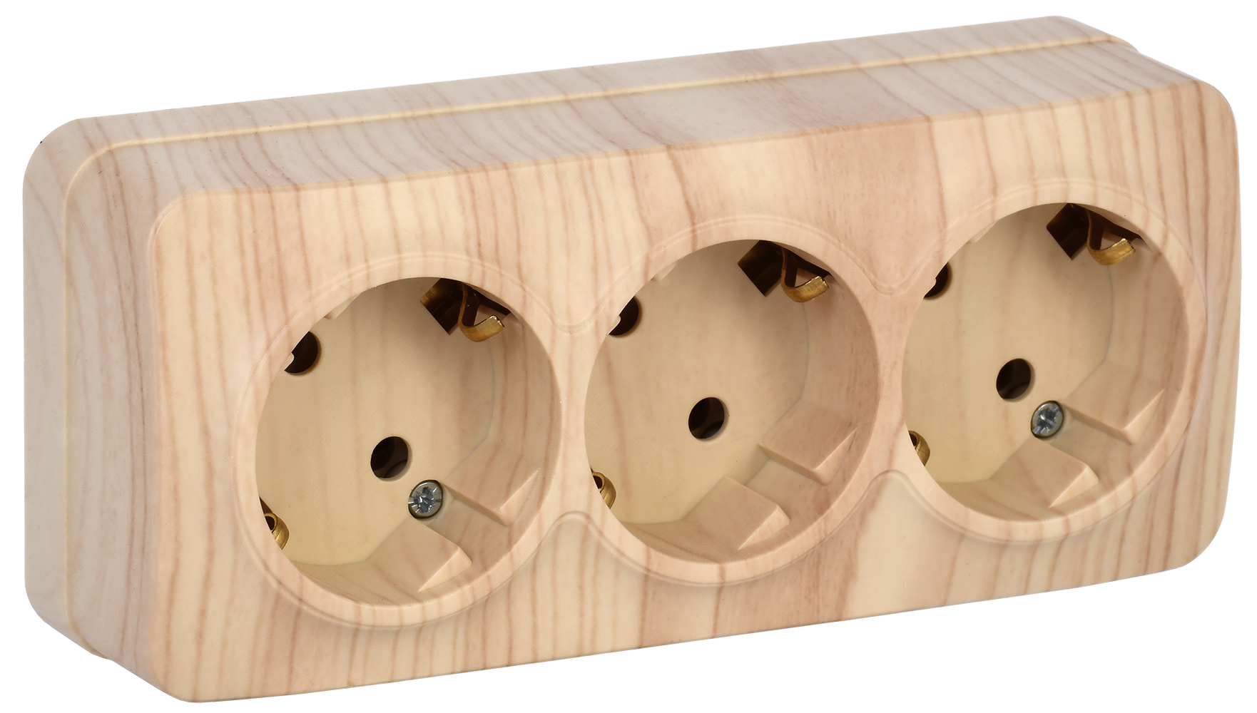 Розетка IEK GLORY открытый монтаж 3-х постовая с з/к 16A в сборе IP20 дуб (ERH31-K24-16) ERH31-K24-16 Glory дуб