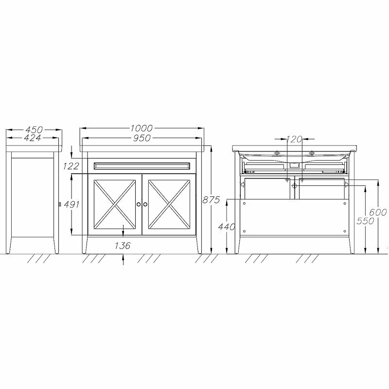 - Габариты корпуса тумбы (ШхВхГ): 950х875х424 мм.