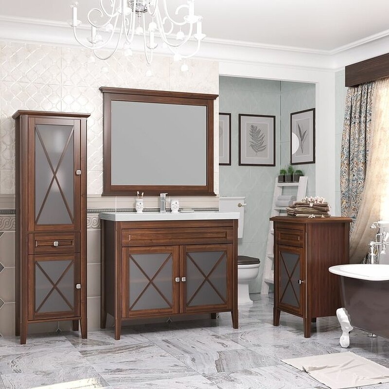 Зеркало для ванной. Цвет-светлый орех. Материал корпуса-массив бука. В комплекте поставки: зеркало