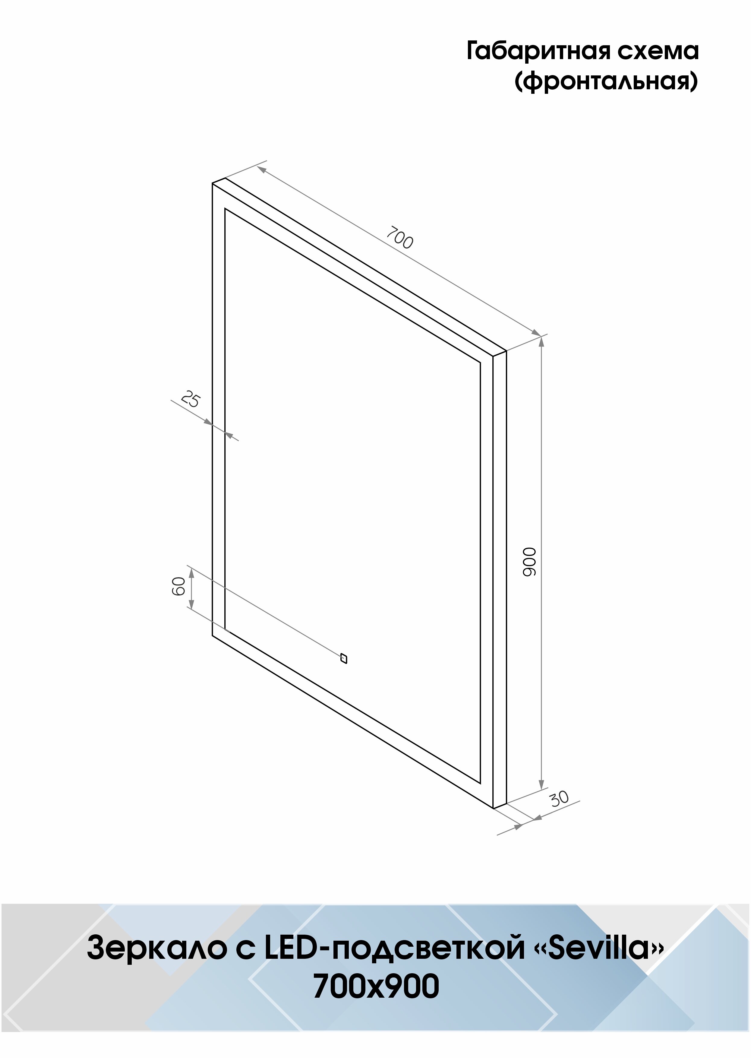 Модель: Sevilla 700х900 ЗЛП2239 с подсветкой с сенсорным выключателем