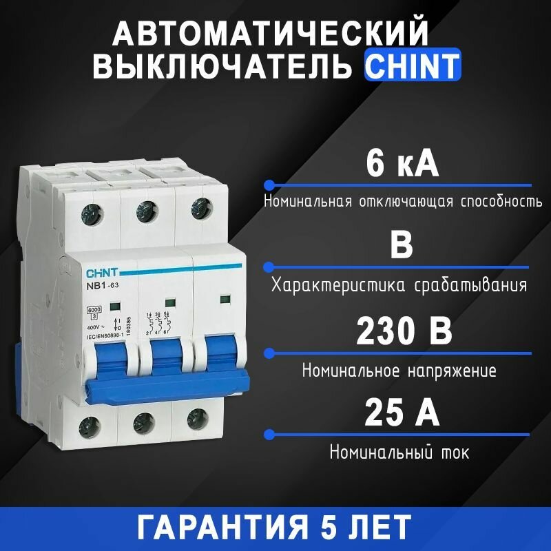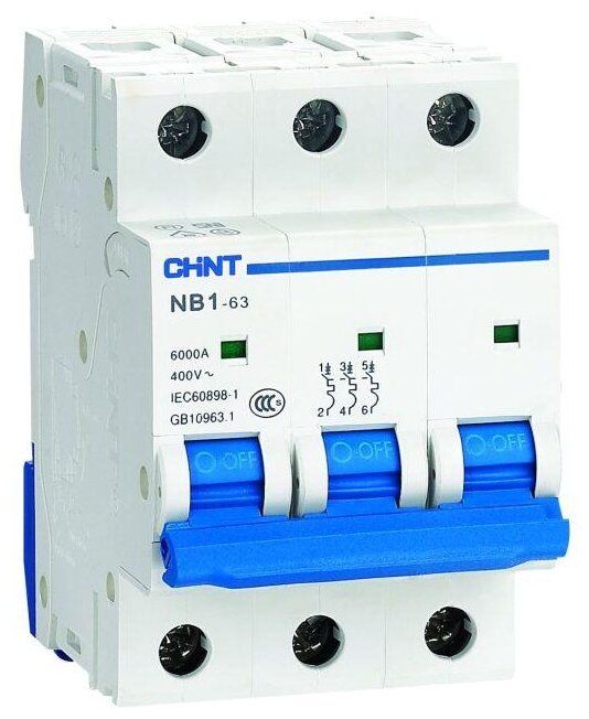 Автоматический выключатель модульный CHINT 3P тип характеристики B 16А 6кА NB1-63 (R) 179686