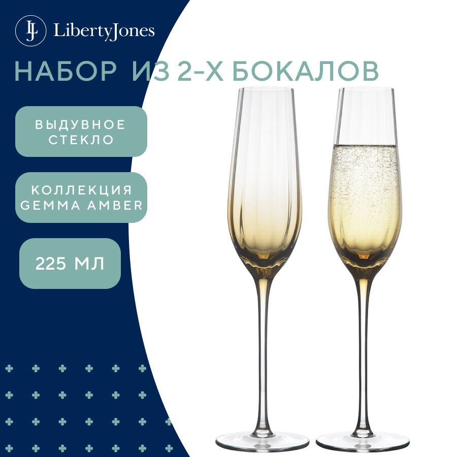 Набор бокалов для шампанского Liberty Jones Gemma Amber 225мл 2шт (HM-GAR-CHGLS-225-2)
