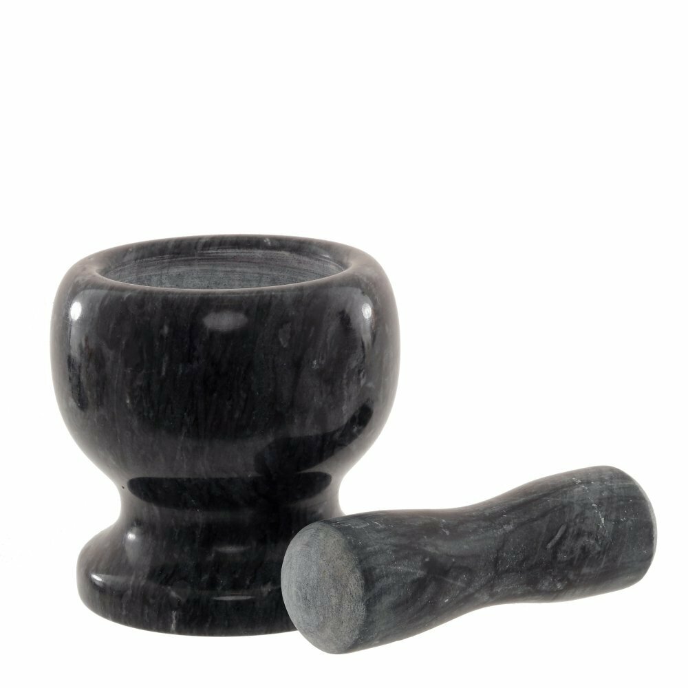 Ступка с пестиком выполнена из мрамора. Её классическая круглая форма не только эстетична, но и практична: обеспечит равномерное измельчение продукта. Ступка - незаменимый помощник для измельчения свежих специй, приправ, трав, таблеток.