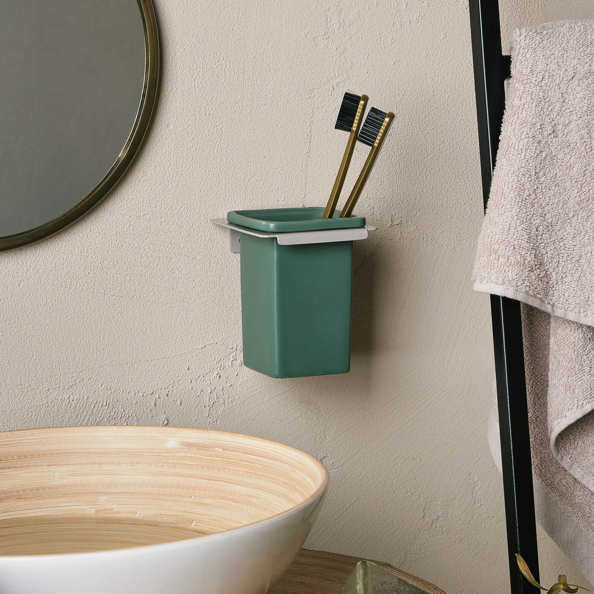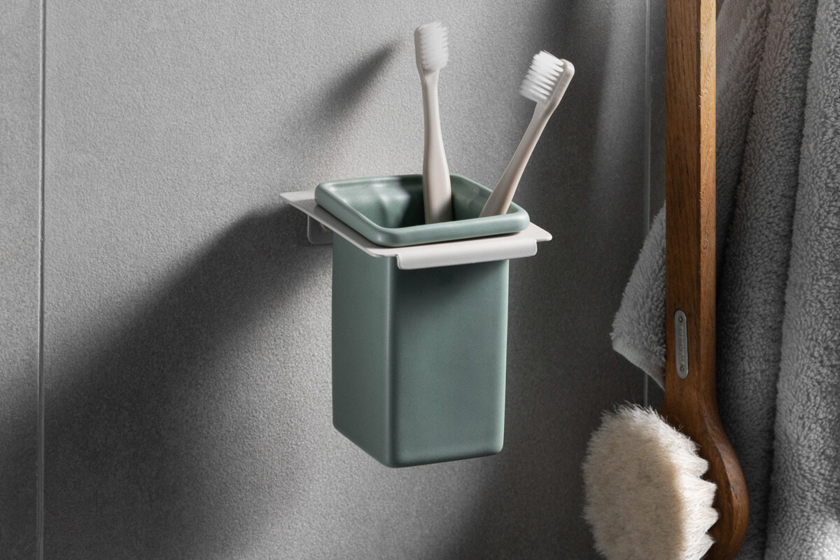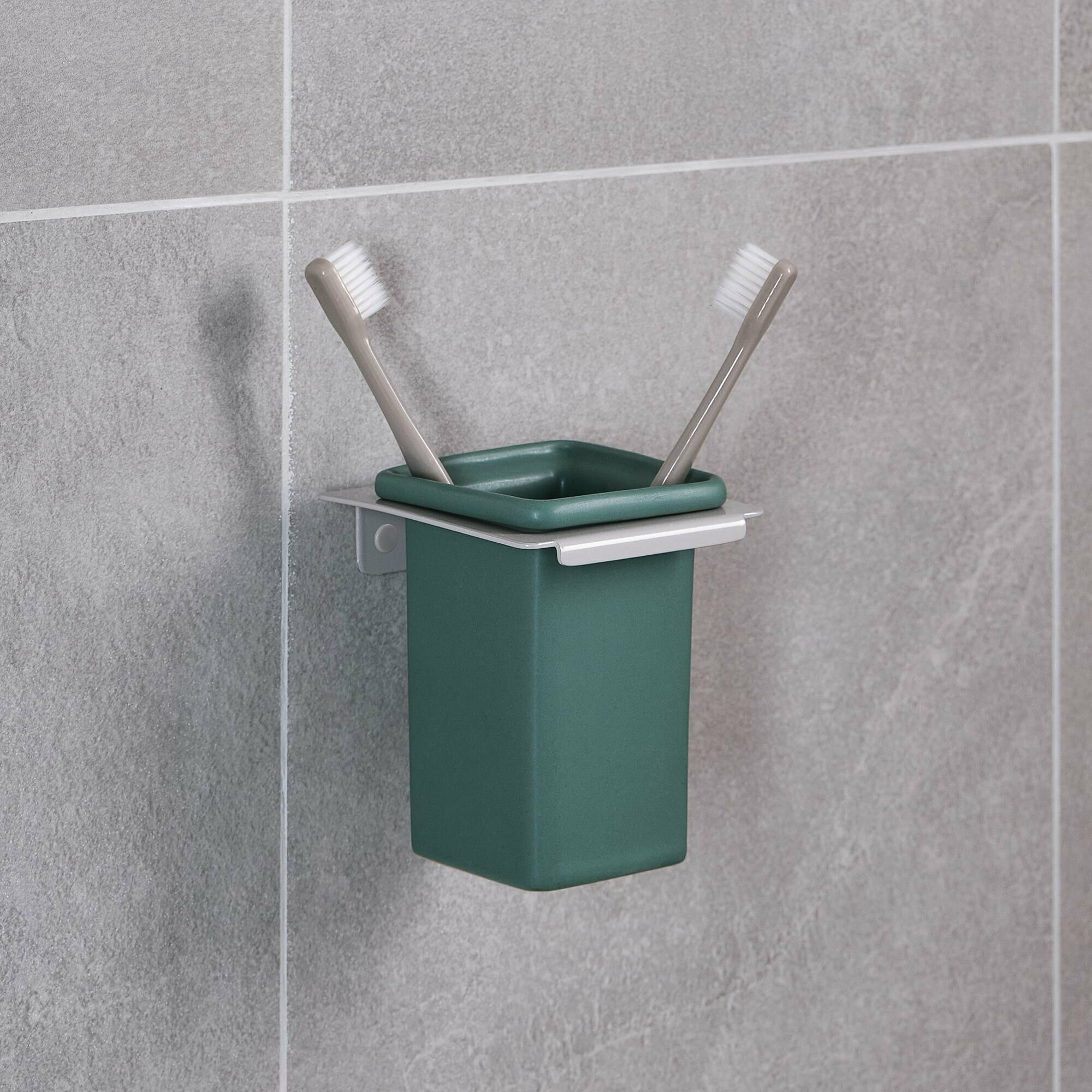 Настенный стакан для зубных щеток Evklid выполнен в бежево-серых и зеленых оттенках. Керамическая колба покрыта матовой глазурью. Держатель из листовой нержавеющей стали с глянцевым порошковым окрашиванием, долговечным в эксплуатации. Стакан надежно крепится к поверхности при помощи саморезов, которые идут в комплекте с пластиковыми заглушками в цвет изделия. Изделие является частью коллекции Evklid, которая представлена в Likemyhome в полном составе. Функциональный дизайн с простыми геометрическими формами подойдет многим интерьерам.