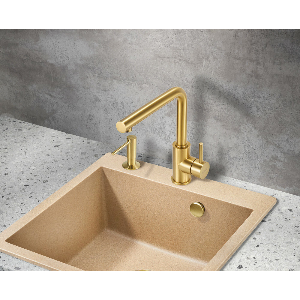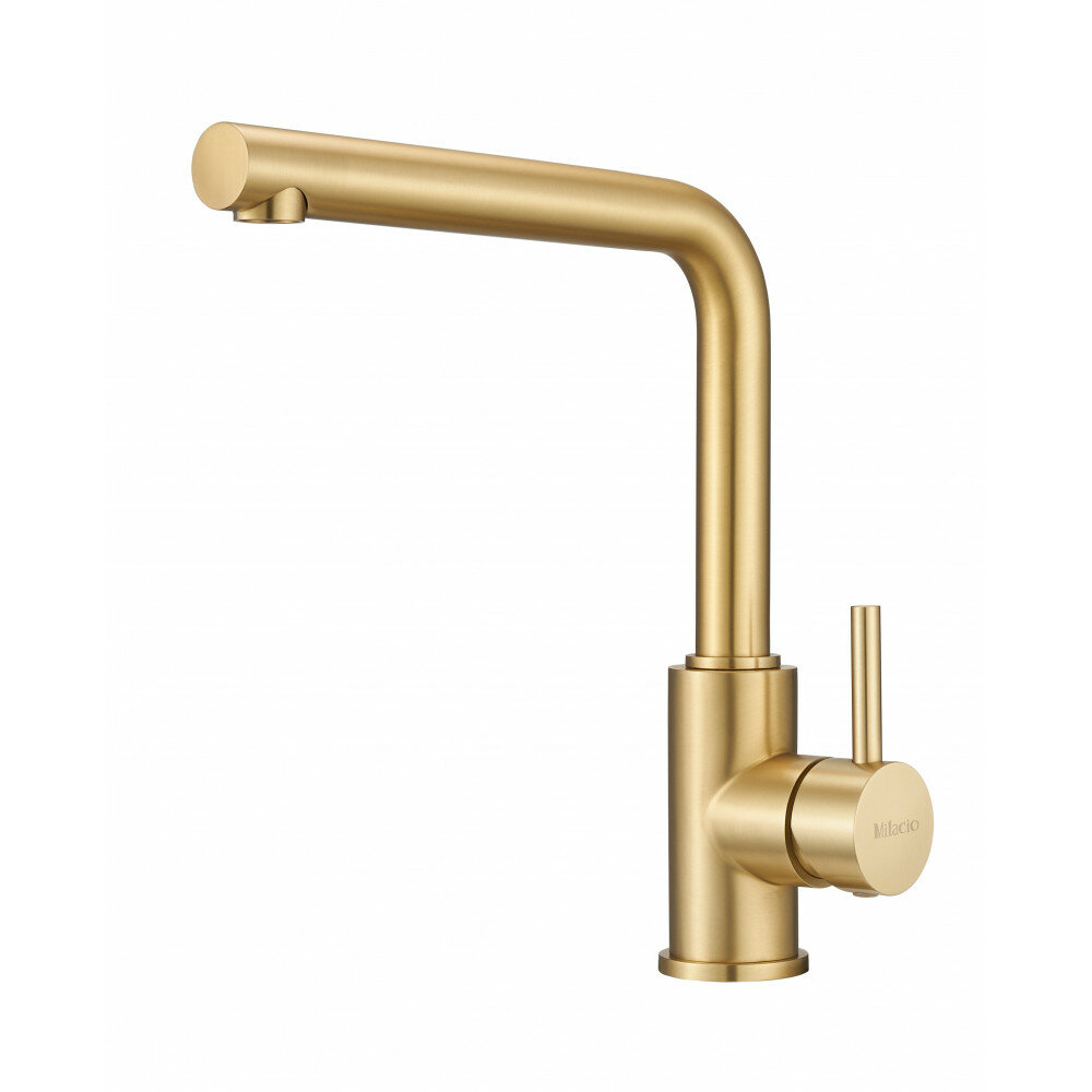 Смеситель для кухонной мойки Milacio Ultra MCU.555.GD из нержавеющей стали станет ярким украшением кухни и верным помощником в хозяйстве. Минималистичный стиль дополняют современные материалы высочайшего качества. Изделие подходит для разных типов раковин и современных интерьеров, удовлетворяя потребности в эстетике и комфорте.