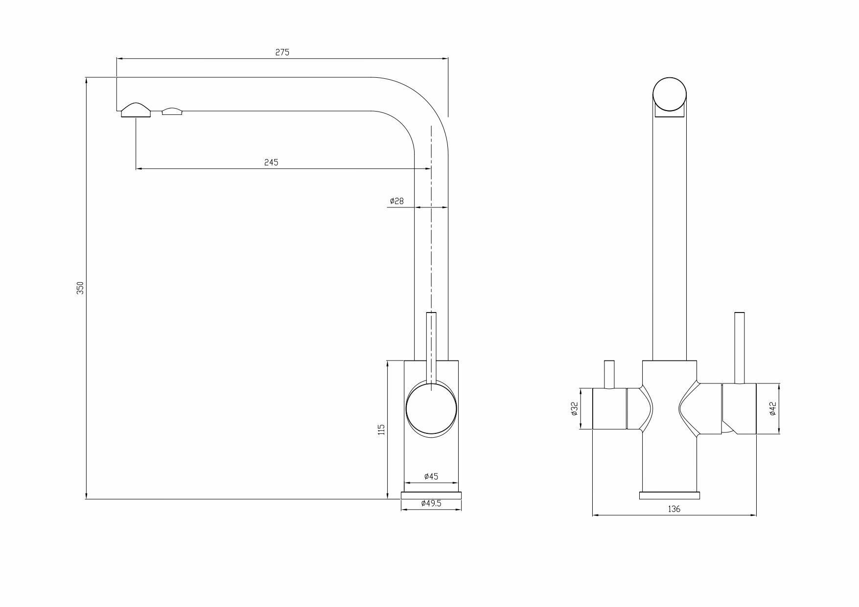 | Форма излива | Г-образная |