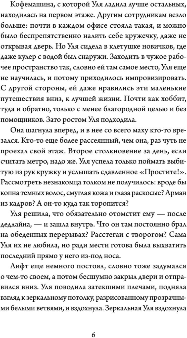 Роковая ошибка или знак судьбы, но вот Уля уже в гуще событий, и Вселенная буквально трещит по швам. А после встреч с таинственными незнакомцами, попеременно заглядывающими в стремительно спускающийся лифт, остается больше вопросов, чем ответов. В общем, не так себе представляла Уля этот рабочий день.