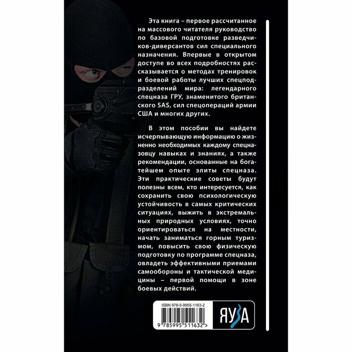 Эта книга — первое рассчитанное на массового читателя руководство по базовои? подготовке разведчиков-диверсантов сил специального назначения. Впервые в открытом доступе во всех подробностях рассказывается о методах тренировок и боевой работы лучших спецподразделений мира: легендарного спецназа ГРУ, знаменитого британского SAS, сил спецопераций армии США и многих других.