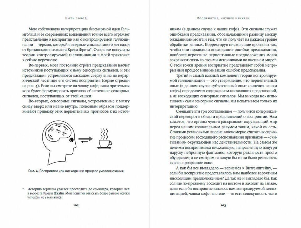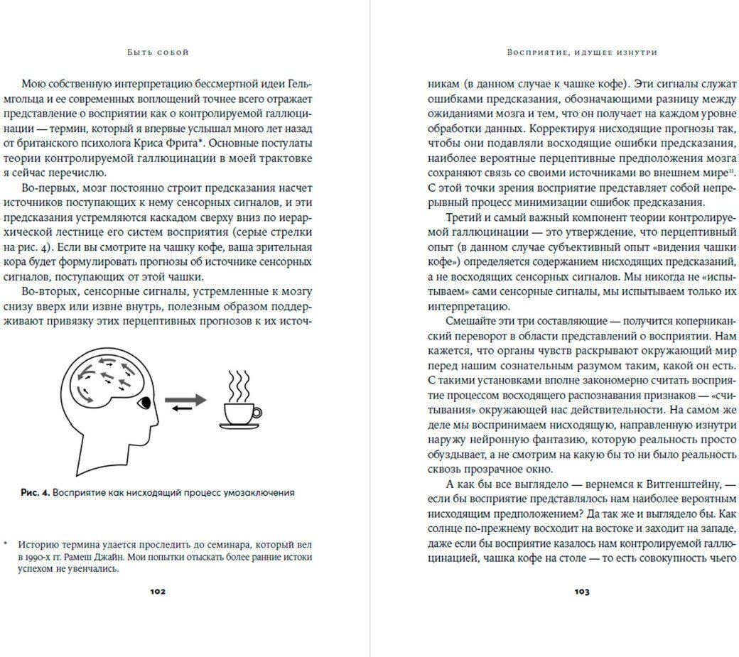 Быть собой не так просто, как может показаться. В мозге каждого из нас миллиарды нейронов неустанно работают над тем, чтобы создавать наш повседневный сознательный опыт. Но как именно это происходит? Каким образом формируется восприятие окружающей действительности «от первого лица»? В наши дни у науки появилась возможность наблюдать за биологическими механизмами мозга, отвечающими за процессы, в ходе которых возникает сознание. По результатам многолетних исследований нейроученый Анил Сет выдвинул новую теорию сознания, которая играет для нейронауки такую же роль, какую сыграла для эволюционной биологии теория Докинза.