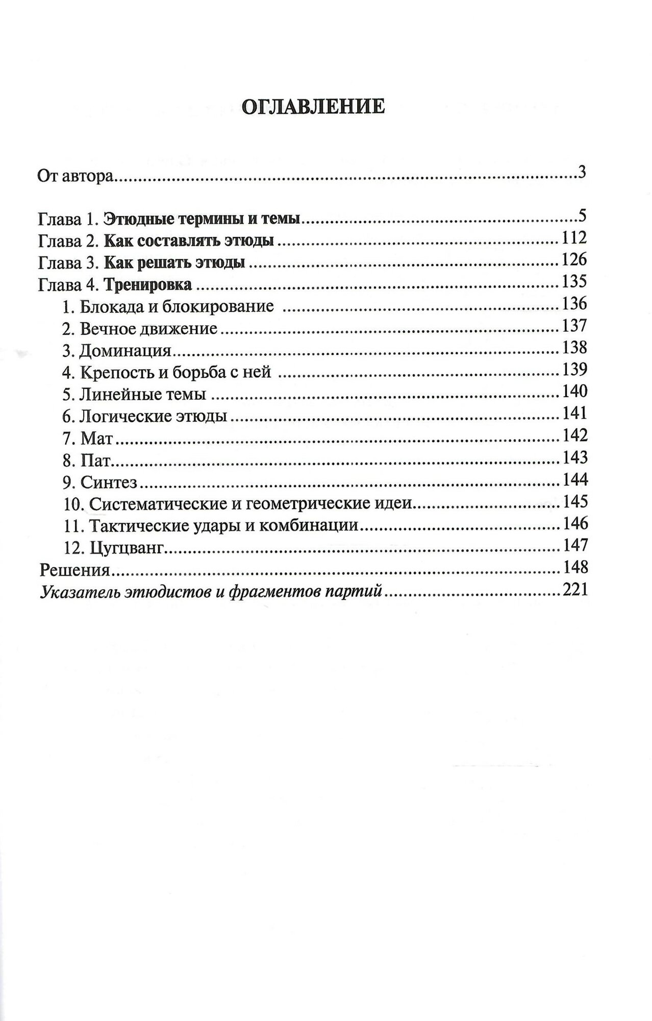 Лучшие шахматные этюды оказывают огромное эстетическое воздействие и надолго запоминаются, поэтому решение или даже просто разбор этюда представляет собой эффективный метод изучения стратегических и тактических элементов игры. Центральная глава книги – «Этюдные термины и темы», в двух других автор делится собственным опытом составления и решения. В заключение предлагаются для самостоятельного решения 72 этюда на 12 наиболее популярных тем, таких как доминация, крепость и борьба с ней, тактические удары и комбинации и др.