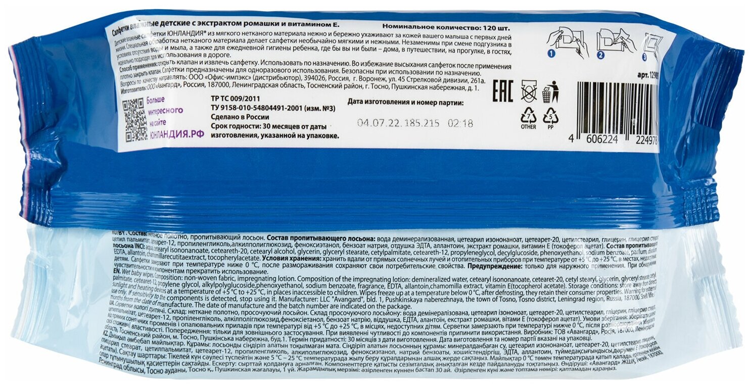 Салфетки влажные ЮНЛАНДИЯ из деликатного нетканого материала бережно очищают и освежают нежную кожу ребенка. Салфетки полностью гипoаллергенны, обладают увлажняющим и тонизирующим эффектом. Не содержат спирта и имеют pH, близкий к pH кожи ребенка.Влажные салфетки Юнландия обязательно должны поселиться в каждом детском рюкзачке и стоять на страже чистоты и здоровья малышей!Кроме того, салфетки помогут маленьким непоседам сохранить в чистоте себя и рабочее место во время любых занятий творчеством, будь то рисование, лепка, создание гравюр, художественных композиций, поделок и аппликаций.Творчество с Юнландией - чистый позитив!