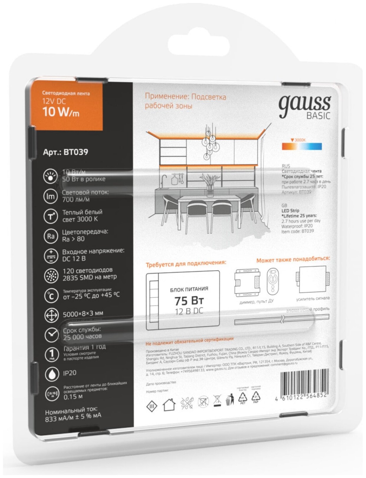 Наш интернет магазин предлагает вам уникальное, надежное и современное световое оборудование - Светодиодная лента Gauss 10W/m 120LED/m 2835SMD теплый белый 5M BT039 . Вы будете приятно удивлены качеством продукции от именитого производителя, который уже много лет поставляет на рынок только качественные и современные товары.