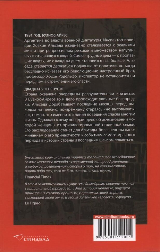 2001 год, Буэнос-Айрес. Аргентина переживает жесточайший экономический и политический кризис. На улицах столицы почти ежедневно вспыхивают волнения. Инспектор полиции Хоакин Альсада в ожидании скорого выхода на пенсию старается держаться подальше от политики. Но расследование дела об исчезновении молодой женщины, семья которой принадлежит к аргентинской элите, поставит его перед необходимостью сделать выбор, заставит столкнуться с призраками прошлого и напомнит о личной причастности к событиям одного из самых мрачных