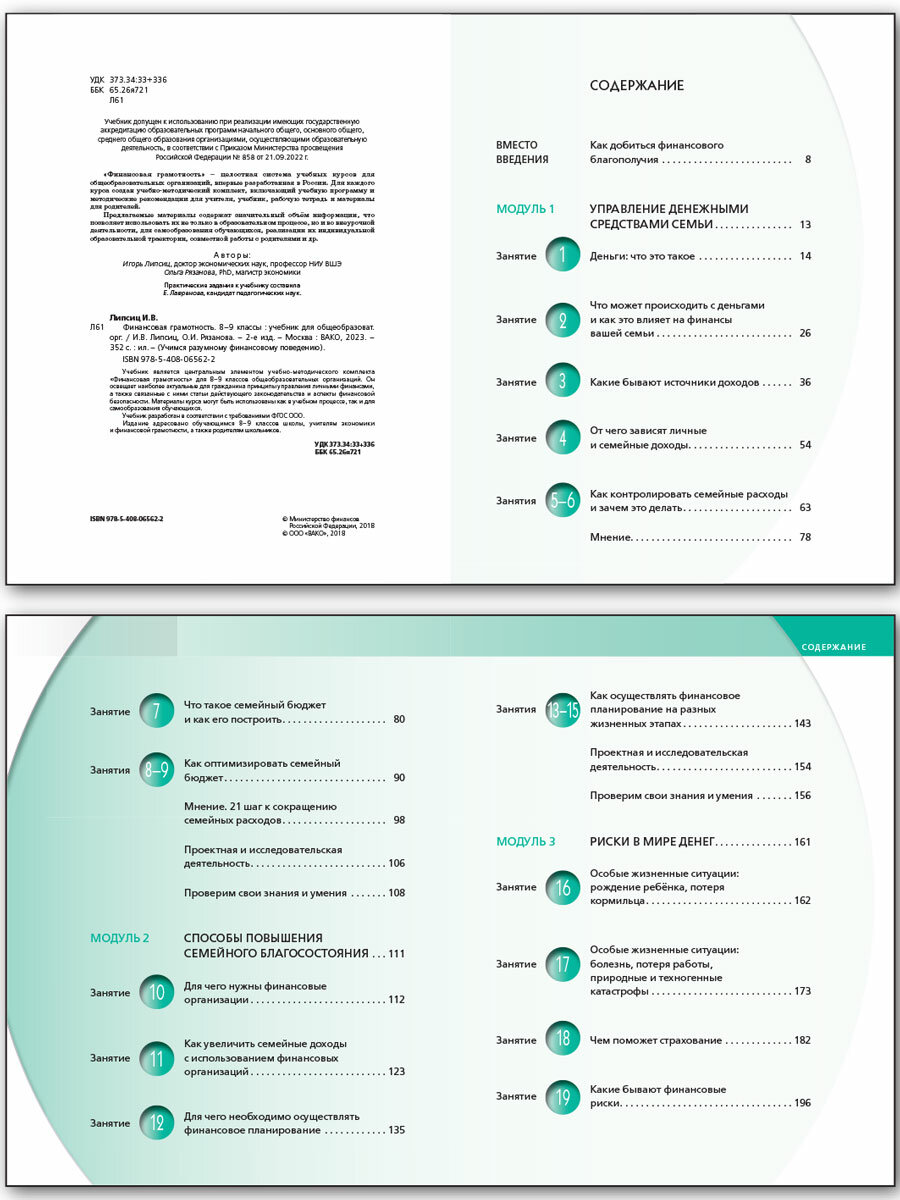 Учебник является центральным элементом учебно-методического комплекта «Финансовая грамотность» для 8–9 классов общеобразовательных организаций. Он освещает наиболее актуальные для гражданина принципы управления личными финансами, а также связанные с ними статьи действующего законодательства и аспекты финансовой безопасности. Материалы курса могут быть использованы как в учебном процессе, так и для самообразования обучающихся. Учебник разработан в соответствии с требованиями ФГОС ООО.
