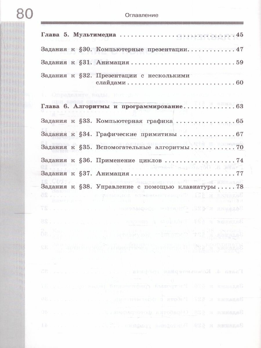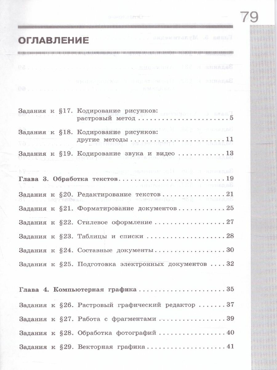 В рабочей тетради для каждого параграфа подобраны задания, которые можно выполнять как на уроке, так и дома. Первая часть рабочей тетради содержит задания по теме "Введение в информатику" и по началу темы "Кодирование информации" пособия. Вторая часть завершает тему и содержит задачи по остальным темам пособия: "Обработка текстов", "Компьютерная графика", "Мультимедиа" и "Алгоритмы и программирование".