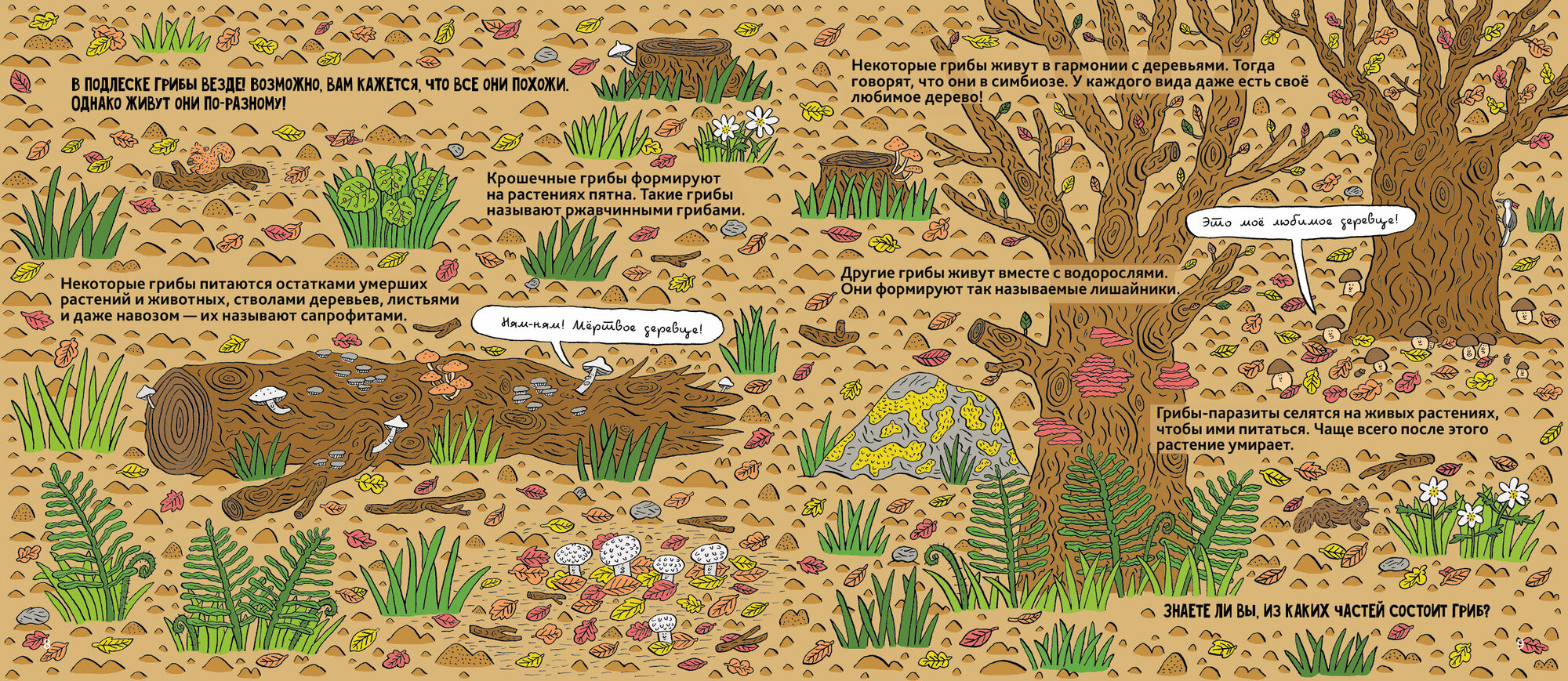 Длинные, ядовитые, тонкие, круглые, гладкие, короткие, липкие, морщинистые, полосатые, чешуйчатые, съедобные и разноцветные— существует большое разнообразие грибов. Не животные и не растения. Кто они такие?