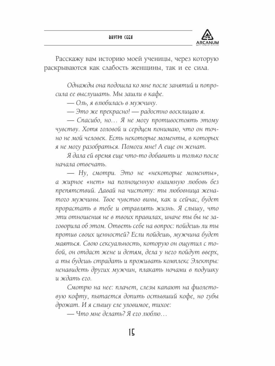 Одним из ярких моментов в книге является идея, что женская сила всегда присутствует внутри нас, и важно научиться принимать и использовать эту силу в своей жизни. Авторка дает нам практические инструменты и советы, как находить внутренний источник силы, как быть в гармонии с собой и как поддерживать свою энергию.