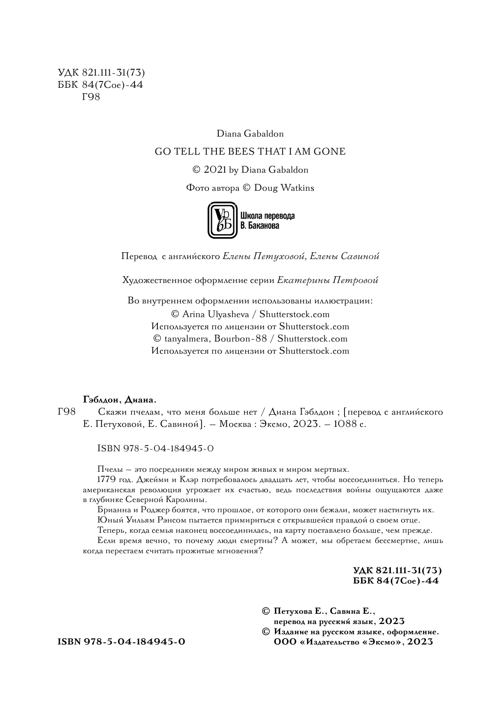 Скажи пчелам что меня больше нет (Диана Гэблдон); Эксмо, Inspiria, Редакция 1, 2023