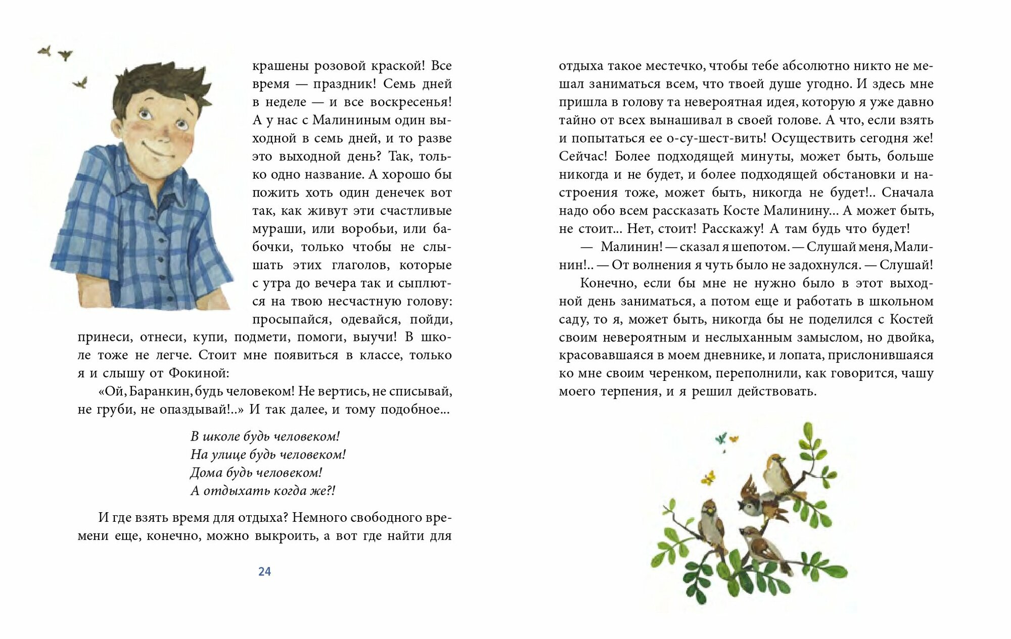 Если бы Костя Малинин и Юра Баранкин не получили двойки по геометрии, то ничего невероятного, возможно, и не произошло бы. Но друзьям так не хотелось исправлять оценки, что они готовы были на что угодно... даже превратиться в воробьев или бабочек! Никаких уроков, сплошные каникулы и свободная жизнь - разве не чудо? А если верить в чудеса, то они непременно случаются.