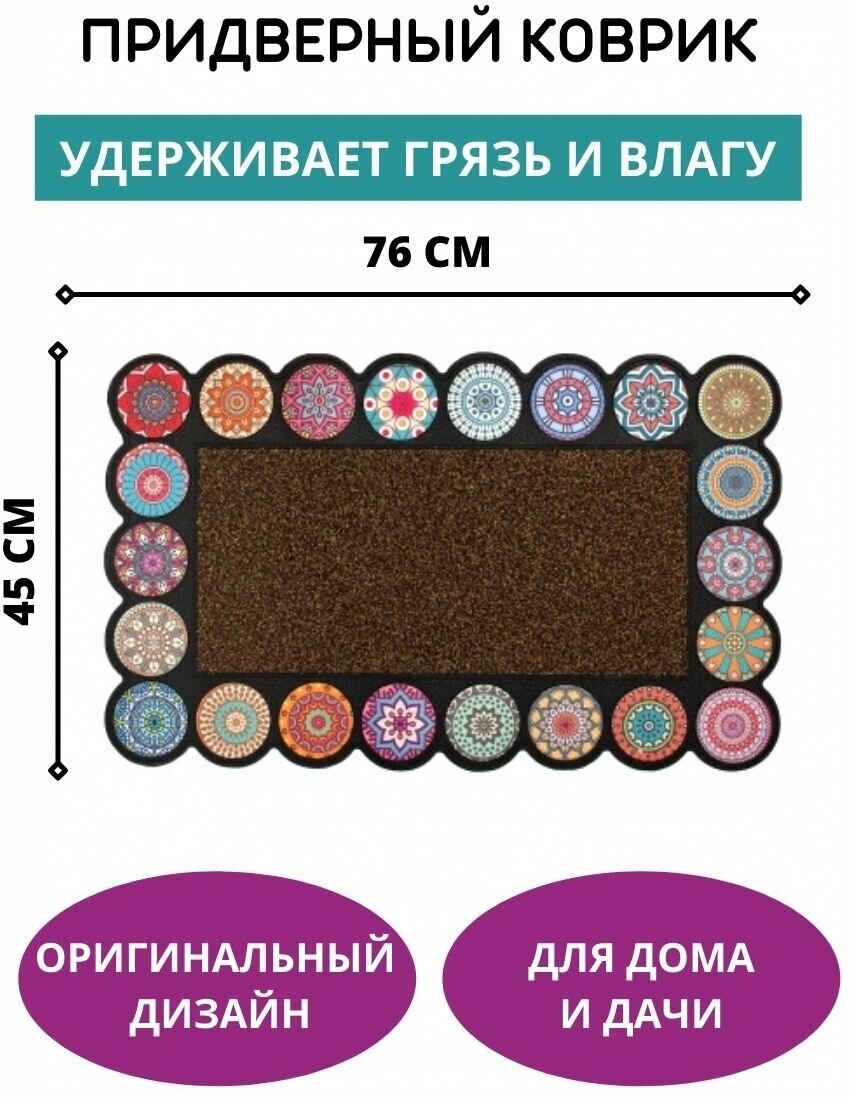 Коврик придверный MOSAIC RONDO brown 76Х45 см. Коврик придверный MOSAIC RONDO поможет сохранить в Вашем доме чистоту и порядок. Жесткий ворс коврика очистит обувь от грязи, снега, песка, а высокие бортики не позволят воде вытечь за его пределы. Нескользящая основа плотно фиксирует коврик на полу. Походит для использования внутри и снаружи помещений. Яркий дизайн создаст настроение даже в хмурую погоду. Не знаете, что подарить на Новый год День рождения Рождество Юбилей 8 марта 14 февраля 23 февраля Татьянин день Новоселье Свадьбу 1 сентября ? Товары для дома - прекрасный подарок маме папе дедушке бабушке дяде тете тестю теще свекрови свекру сестре брату другу подруге начальнику коллеге сыну дочке внуку внучке ! Изделие отличает высокое качество, лаконичный дизайн и стильный внешний вид. Будет красиво смотреться у входа, чем порадует гостей и хозяев дома. Красивый и функциональный коврик из высококачественных материалов прослужит вам долгие годы. Доступно для доставки в ваш город в удобный пункт выдачи!