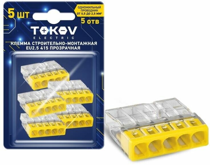 Клемма TOKOV ELECTRIC строительно-монтажная EU2.5 415 прозр. 5 отверстий (блист.5ш TKE-EU2.5-415/BL5