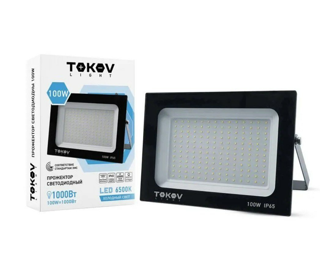Прожектор светодиодный 100Вт 6700лм 6500К IP65 черн. TOKOV Light — это устройство, которое используется для освещения больших территорий.