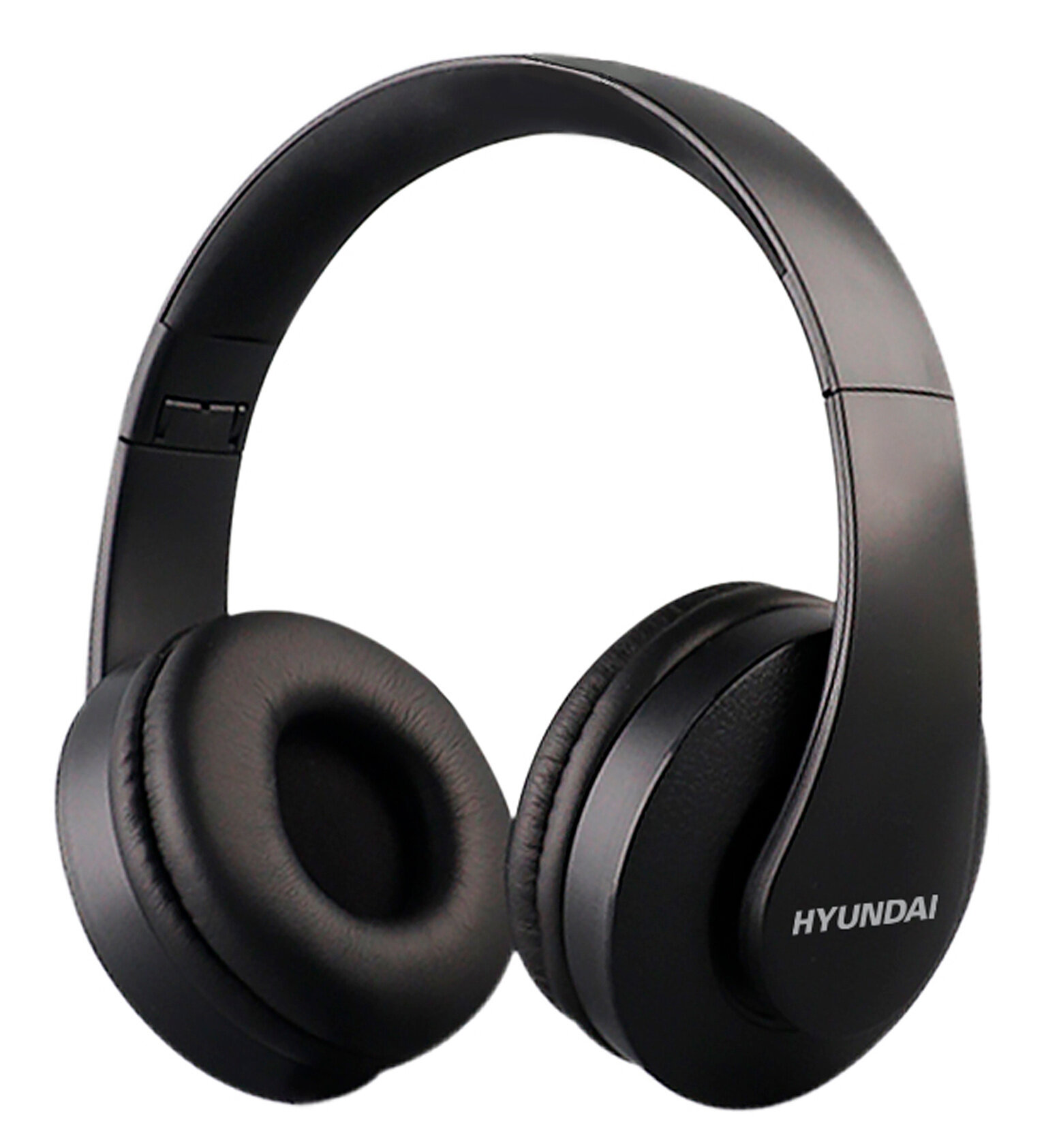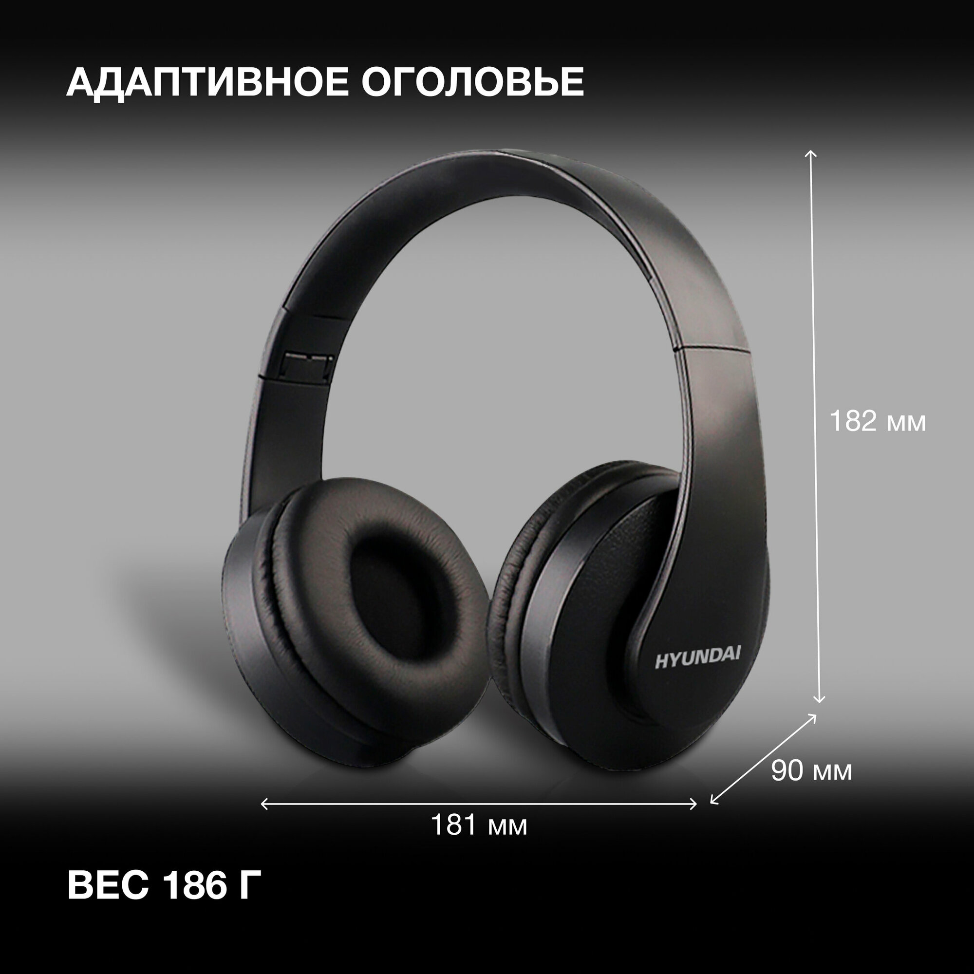 Гарнитура Hyundai H-HP102 черный, накладные, крепление оголовье, беспроводные bluetooth, регулятор громкости на наушниках, микрофон встроенный