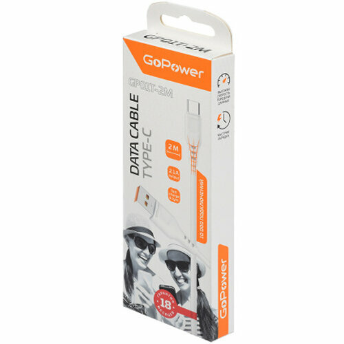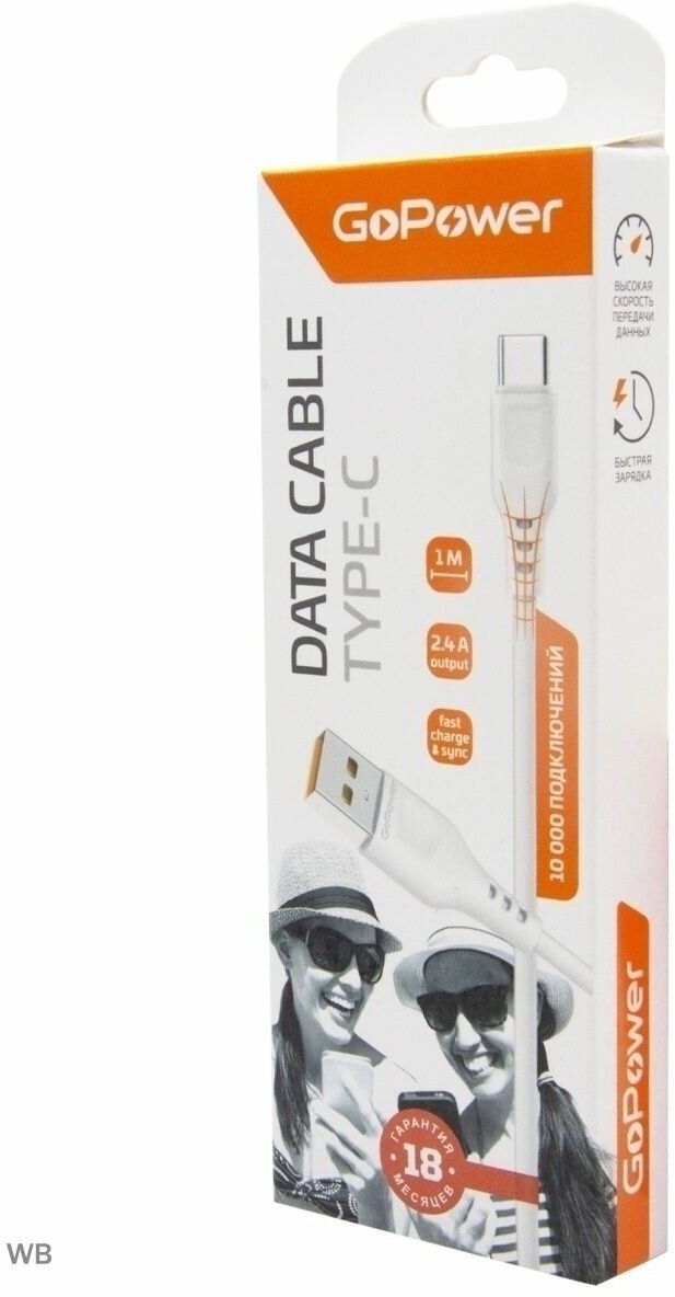 Кабель GoPower GP01T USB (m)-Type-C (m) 1.0м 2.4A ПВХ белый (1/800) Кабель GoPower GP01T (00-00018565)