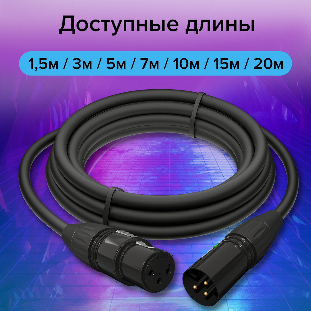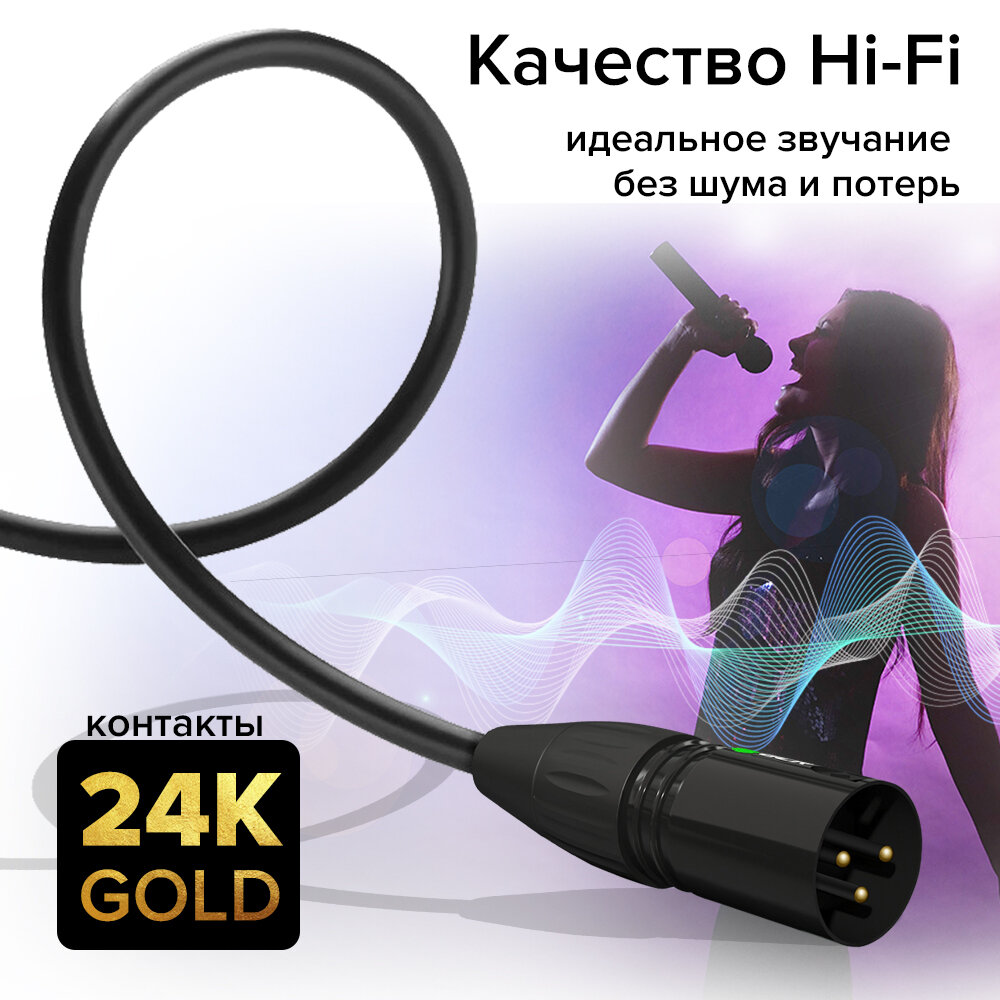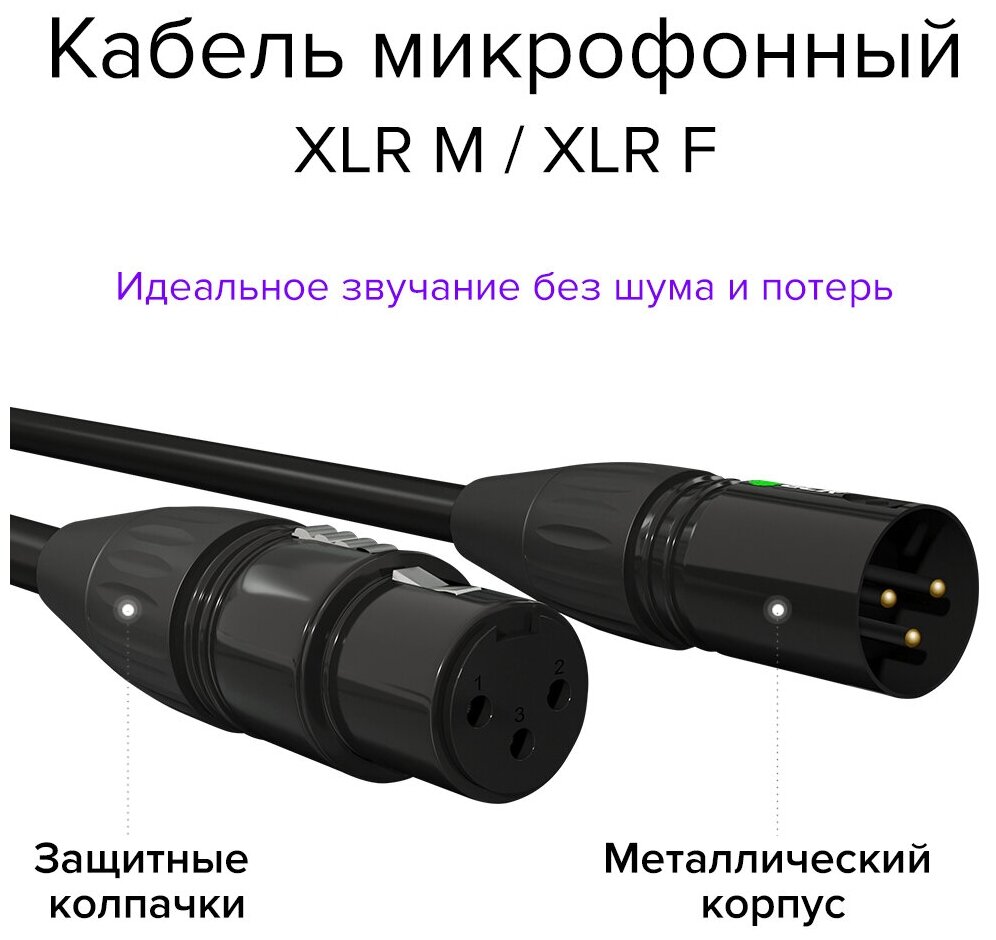 Кабель XLR M - XLR F предназначен для микрофонов и другого записывающего, микшерного и осветительного оборудования с 3-контактными разъемами XLR. С его помощью вы сможете легко подключить конец кабеля с разъемом XLR F (гнездо) к микрофону с подходящим коннектором, а разъем XLR M (штекер) - к порту микшера. Особенности: Hi-Fi кабель: высокое качество звука без шума и потерь Удобное подключение микрофона к микшерному пульту Гибкая, эластичная и прочная защита RoHS PVC Позолоченные контакты 24K GOLD Медный проводник + экранирование: кристально чистый звук XLR разъемы с металлическим корпусом Блокировка разъемов: прочное подключение Изоляционные колпачки: защита от перегибов кабеля Сбалансированный кабель: без помех на любом расстоянии Для студийной записи и живых выступлений Для пения, звукозаписи, концертов, мероприятий Широкая совместимость Микрофонный кабель - идеальное решение для студийной записи, живого звука или полевых записей. Прекрасно подходит для концертного исполнения, звукозаписи, проведения мероприятий, презентаций. Совместим с такой аппаратурой, как микрофоны, микшерные пульты, динамики, эквалайзеры, усилители звука, DMX контроллеры, а также другими устройствами с разъемами XLR. Прочная конструкция микрофонного кабеля обеспечивает его долговечность и исключительную производительность. Медный проводник отличается прекрасной электропроводностью и устойчивостью к воздействию коррозии, что, в сочетании с высококачественным экранированием и позолоченными контактами, позволяет передавать безупречно чистый звук, сводя к минимуму нежелательные шумы. Сбалансированный XLR кабель сделан из качественных материалов и гарантирует оптимальную передачу сигнала без потерь и прерываний на любом расстоянии. Разъемы с запирающими механизмами обеспечивают надежное соединение и предотвращают случайное отключение. Благодаря прочной оболочке из PVC пластика провод отличается гибкостью, устойчивостью к механическим повреждениям и перепаду температур. Долговечный и надёжный Hi-Fi кабель гарантирует достоверный звук, стабильное подключение и четкое воспроизведение с минимальной погрешностью. Позвольте себе насладиться богатыми деталями звука и великолепным звучанием.