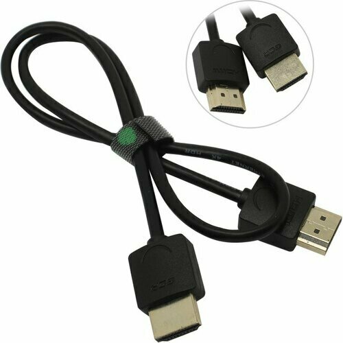 Greenconnect Кабель SLIM 0.5m HDMI 2.0 черный Slim OD3.8mm HDR 4:2:2 Ultra HD 4K 60 fps 60Hz 3D AUDIO 18.0 Гбит/с 32/32 AWG GCR-51592 Greenconnect HDMI (m) - HDMI (m) 0.5м (GCR-51592)