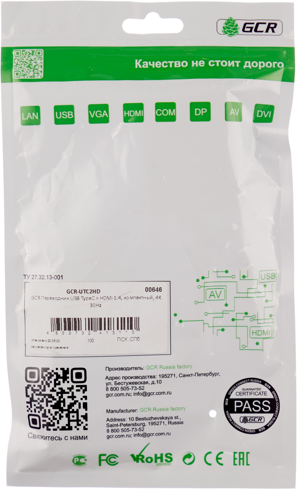 Greenconnect Переходник USB TypeC > HDMI 19F Greenconnect серия Greenline GCR-UTC2HD Greenconnect USB TypeC > HDMI 19F Greenconnect серия Greenline (GCR-UTC2HD)