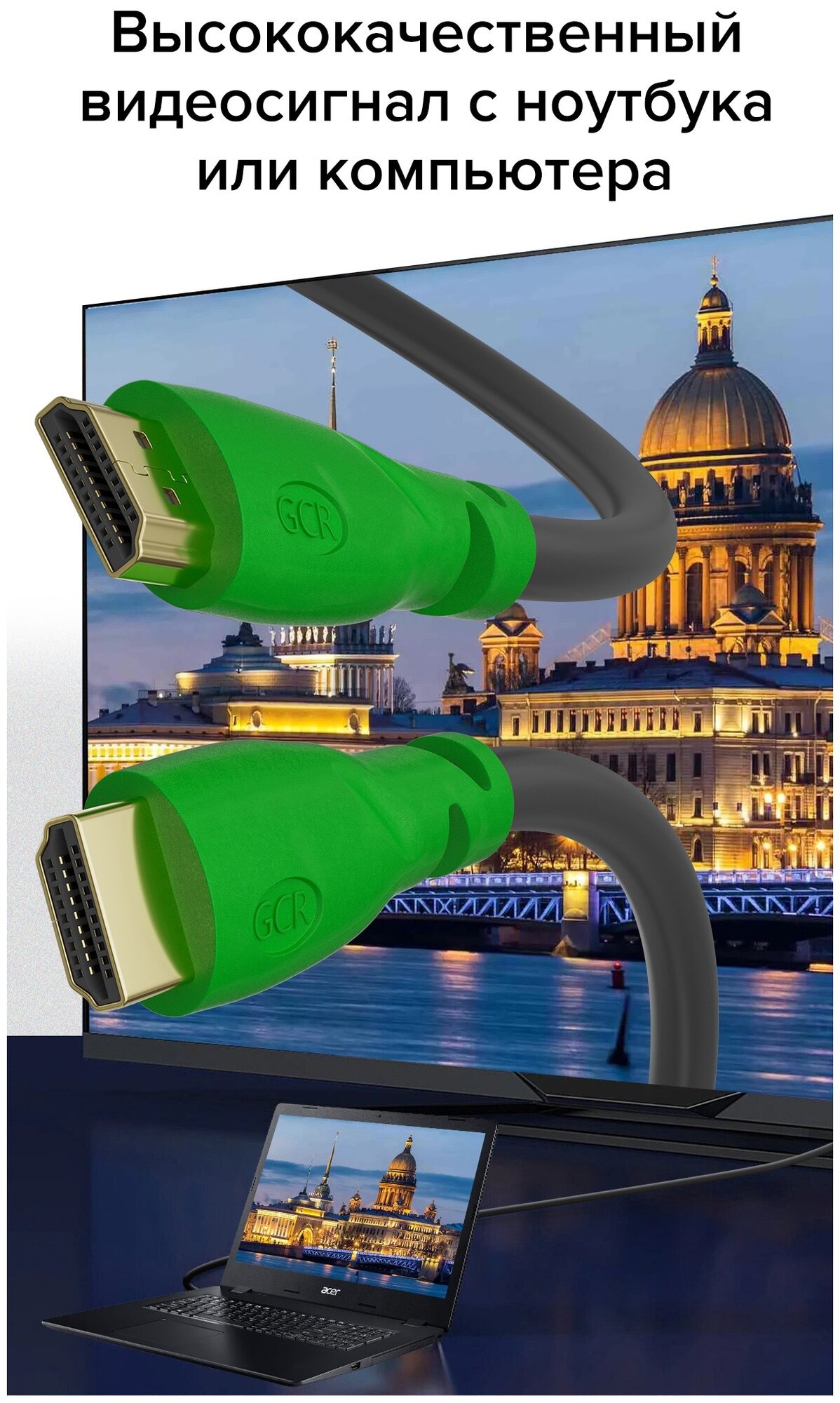 Greenconnect Кабель 10.0m HDMI версия 2.0 HDR 4:2:0 Ultra HD 4K 60 fps 60Hz/5K*30Hz 3D AUDIO 18.0 Гбит/с 28/28 AWG OD7.3mm тройной экран черный GCR-HM311-10.0m Greenconnect HDMI (m) - HDMI