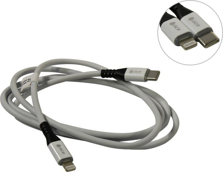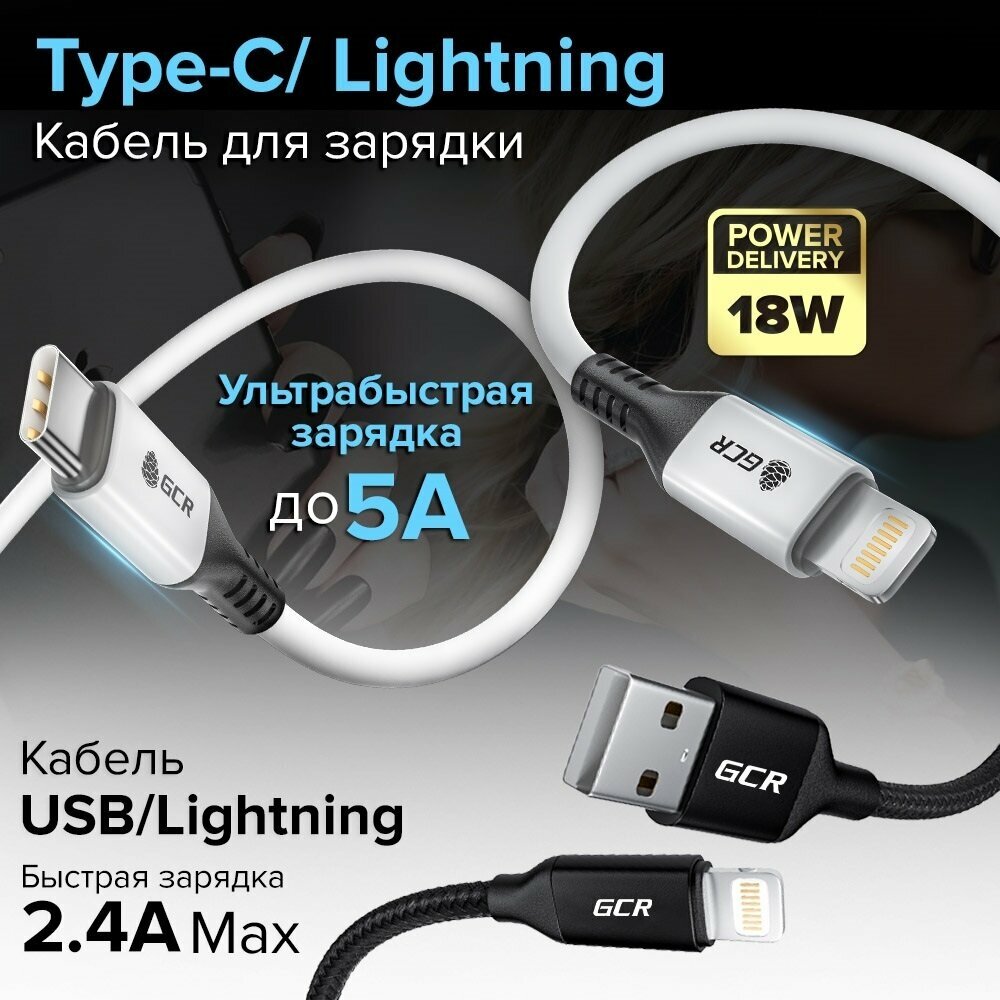 Стильный кабель GCR TypeC Lightning для iPhone с поддержкой стандарта быстрой зарядки Power Delivery предназначен для зарядки iPhone и других устройств от компании Apple.