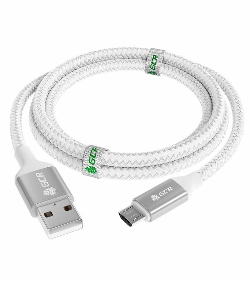 GCR QC Кабель 1.0m MicroUSB быстрая зарядка белый нейлон AL корпус серебро белый ПВХ 28/24 AWG GCR-52468 Кабель Greenconnect 1 м (GCR-52468)