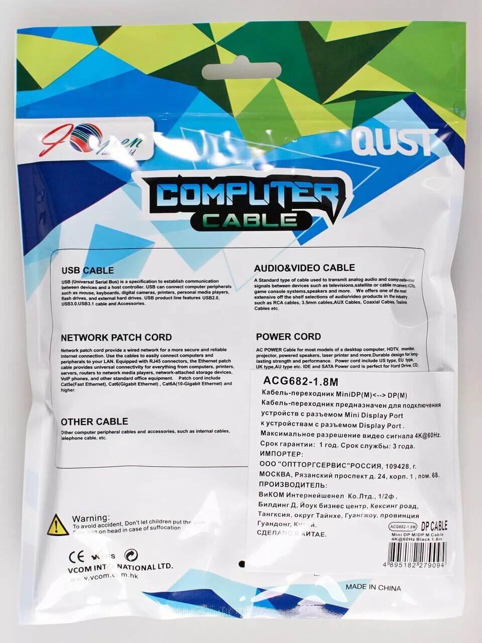 Сервис сравнения цен СкидкаГИД предлагает сравнить цены на товар «Кабель Mini DisplayPort M -> Display Port M 4K*60 Hz 18м iOpen (Aopen/Qust) <ACG682-1.8M> VCOM Кабель-переходник AOpen/Qust Mini DisplayPort M/DisplayPort M (ACG682-1.8M)»
