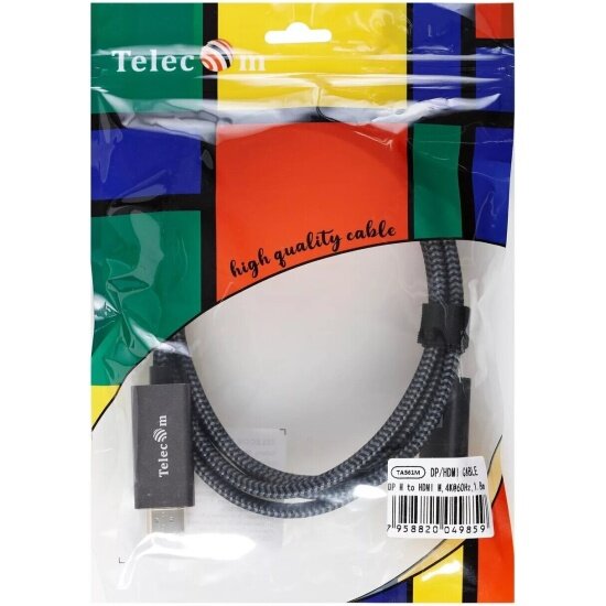 Кабель DisplayPort M-> HDMI M 4K@60Hz 1.8m Telecomоплетка (TA561M-1.8M) VCOM Кабель-переходник Telecom DisplayPort M/HDMI M (TA561M-1.8M)